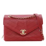 Red Quilted Calfskin Small Coco Chevron Envelope Flap Bag Aged Gold Hardware, 2018