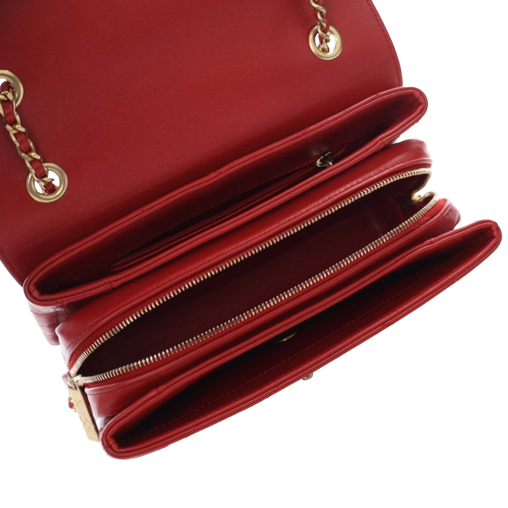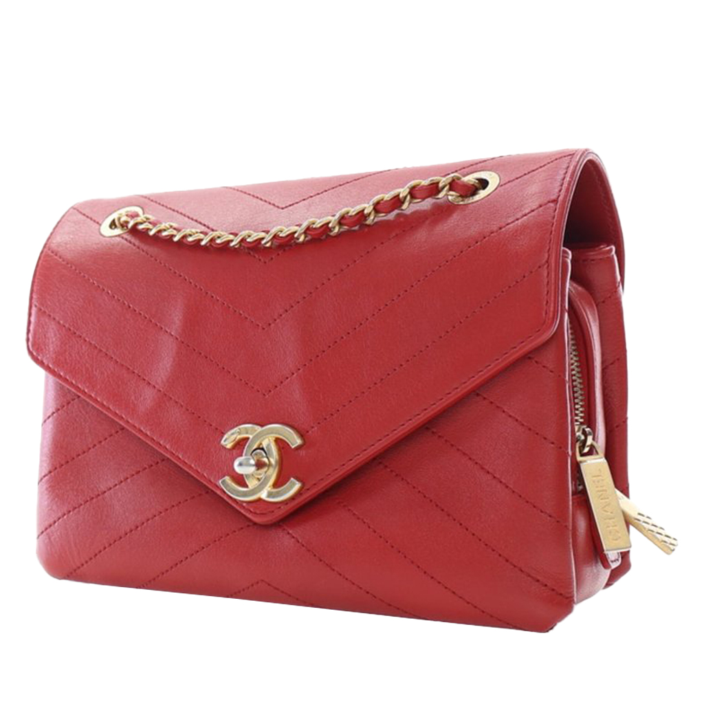 Chanel Red Quilted Calfskin Small Coco Chevron Envelope Flap Bag Aged Gold Hardware, 2018The interior is lined in a tonal textile materialThis item is final sale