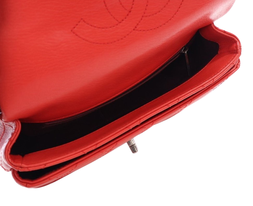 Red Quilted Calfskin Small Seasonal Two Way Flap Bag Ruthenium Hardware, 2015-2016