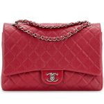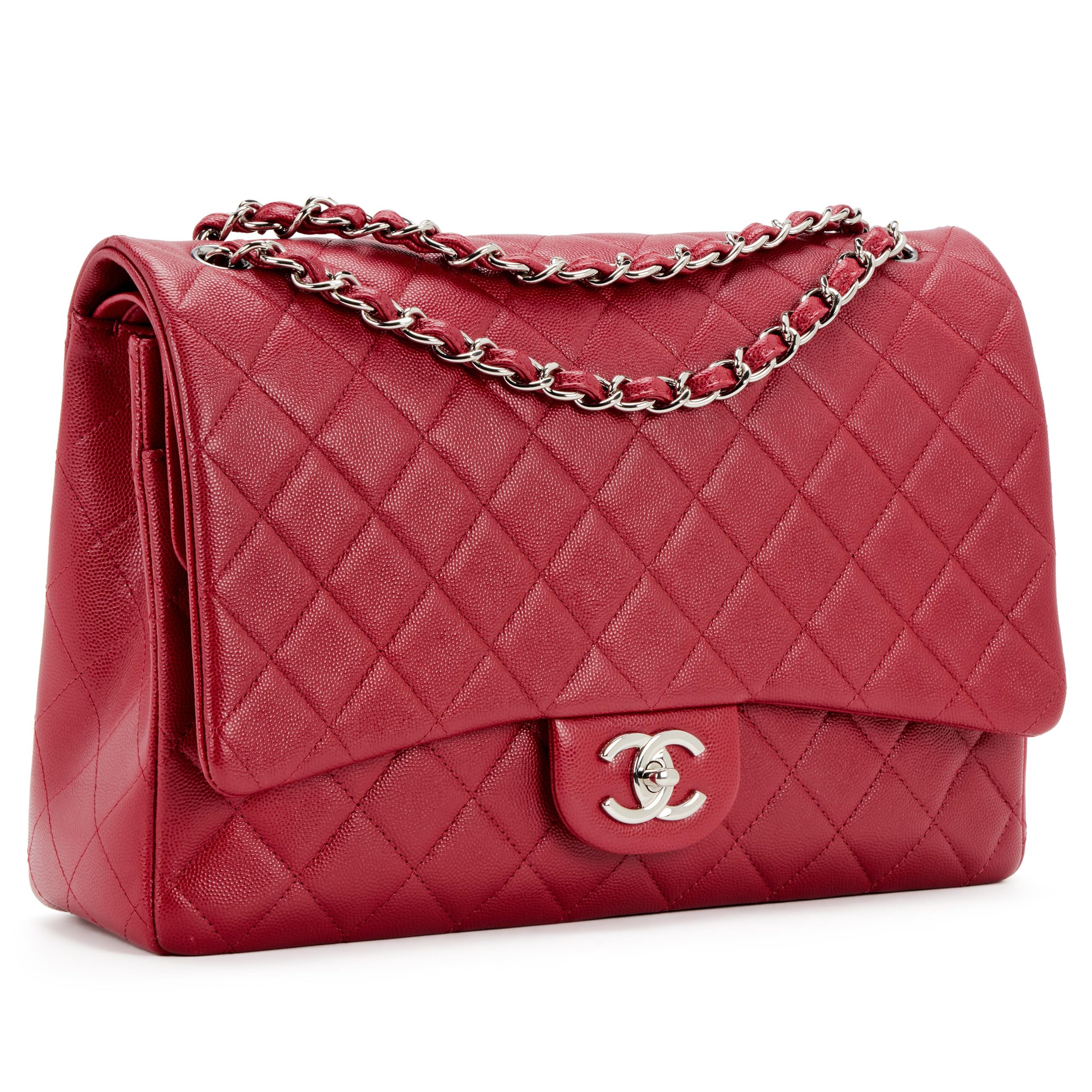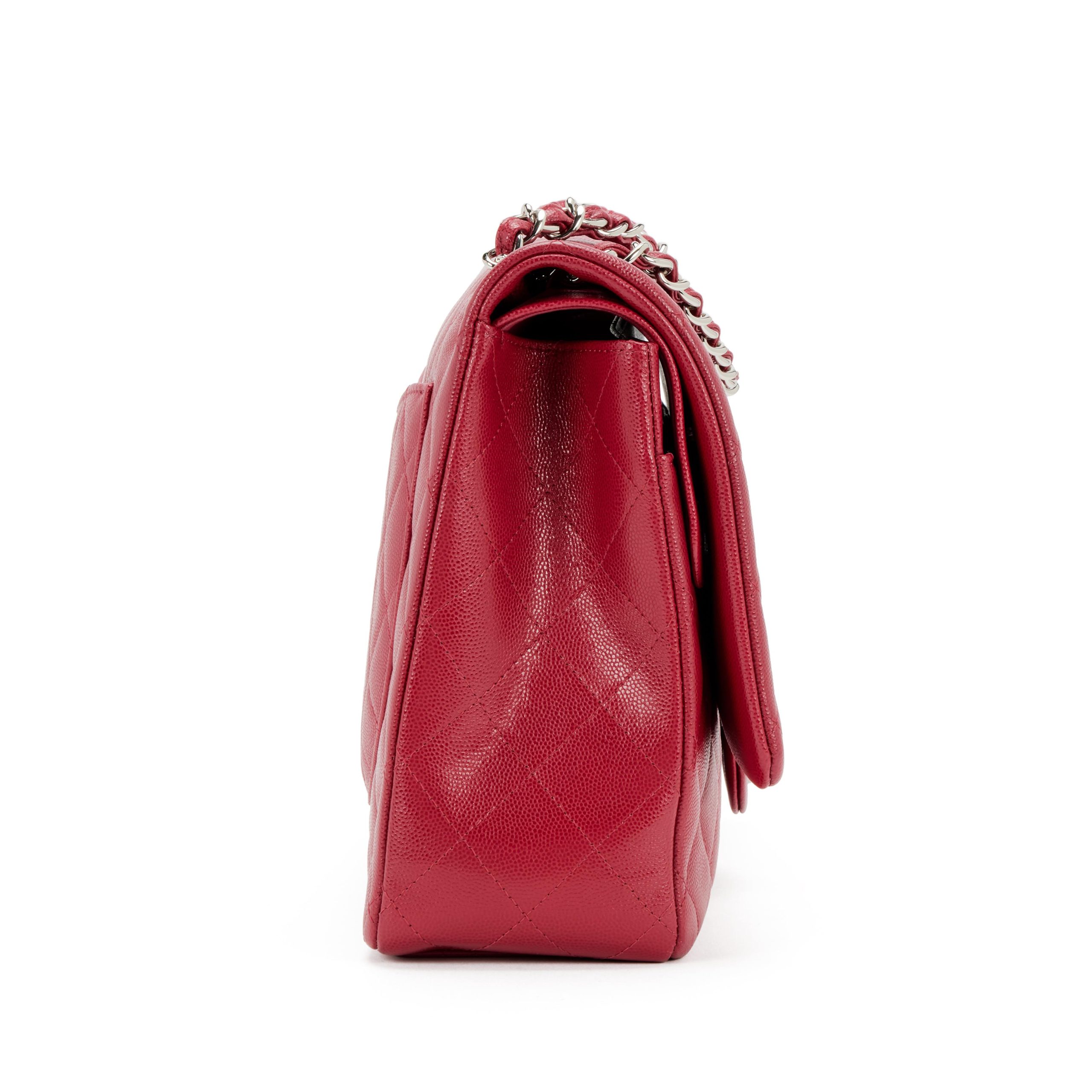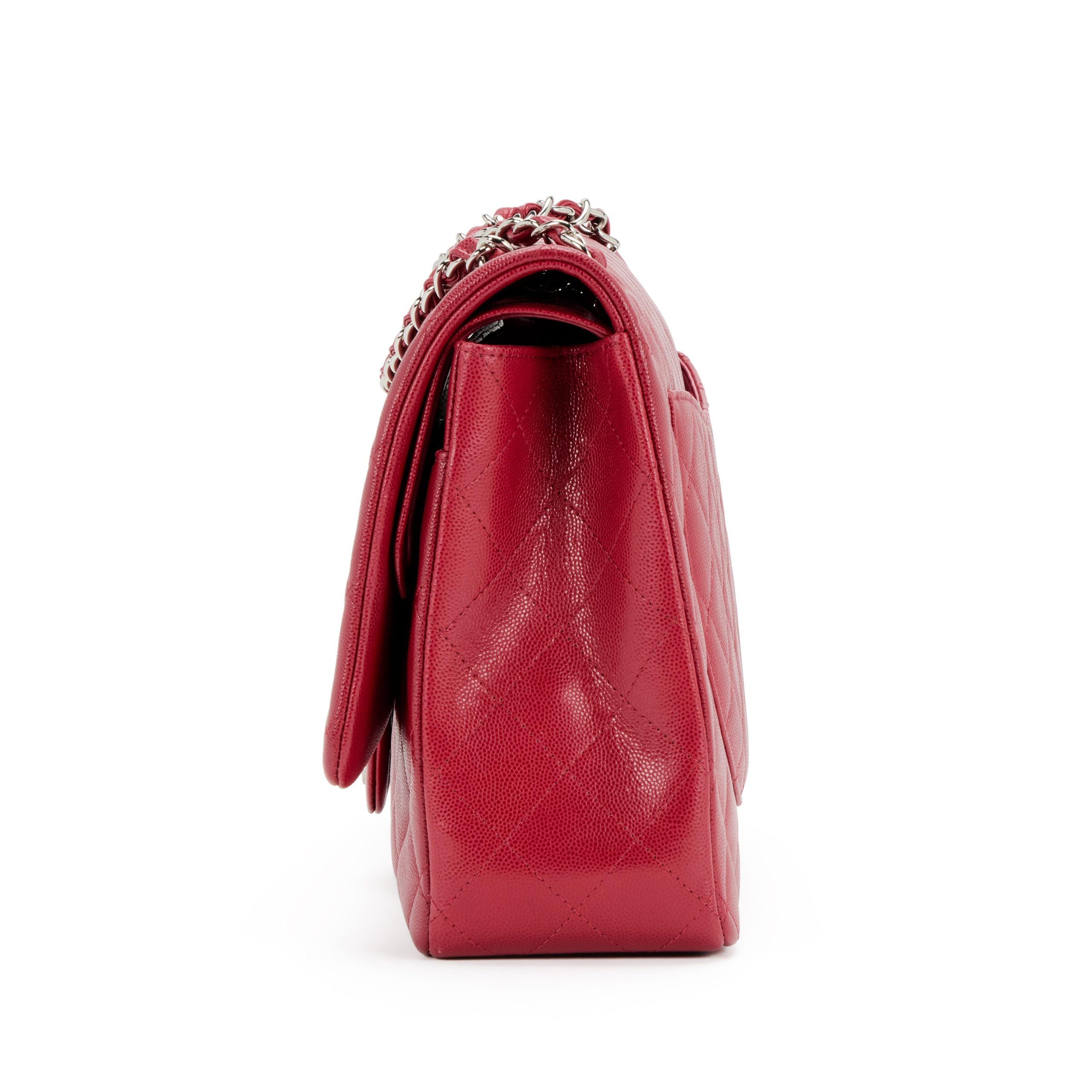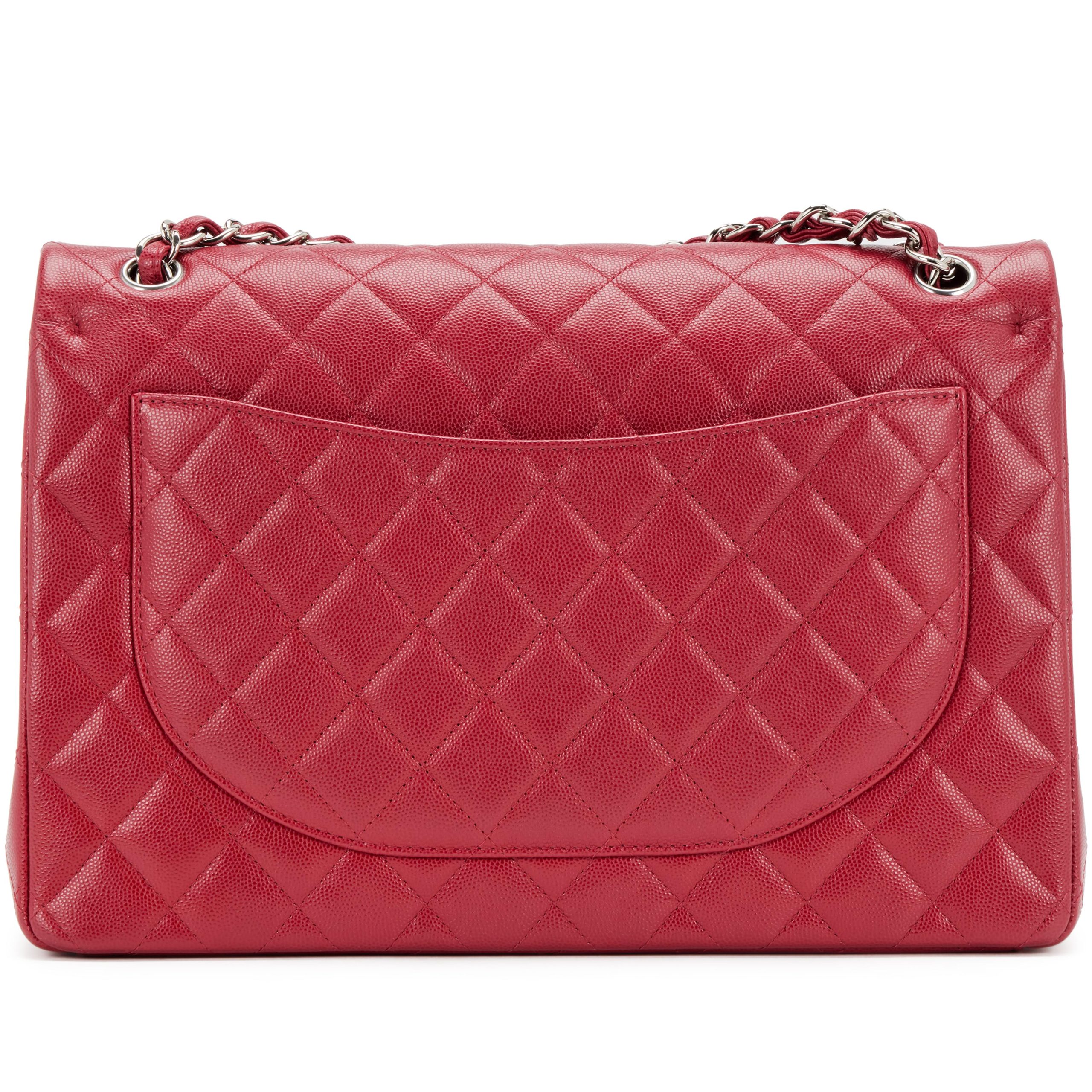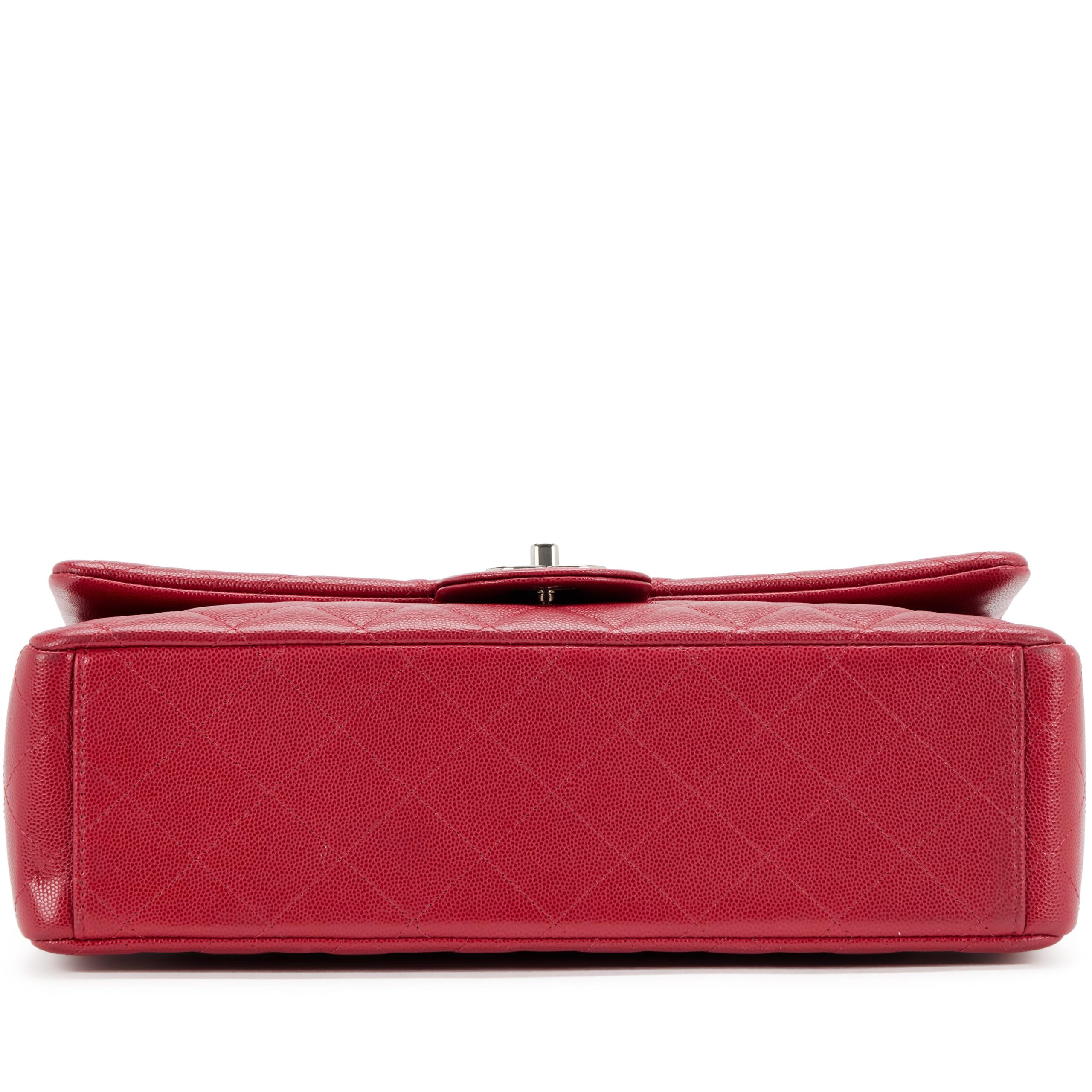 Chanel Red Quilted Caviar Maxi Classic Double Flap Silver Hardware, 2018-2019The interior is lined in a tonal leatherIncludes authenticity card and dust bagThis item is final sale