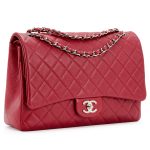 Red Quilted Caviar Maxi Classic Double Flap Silver Hardware, 2018-2019