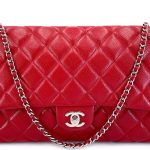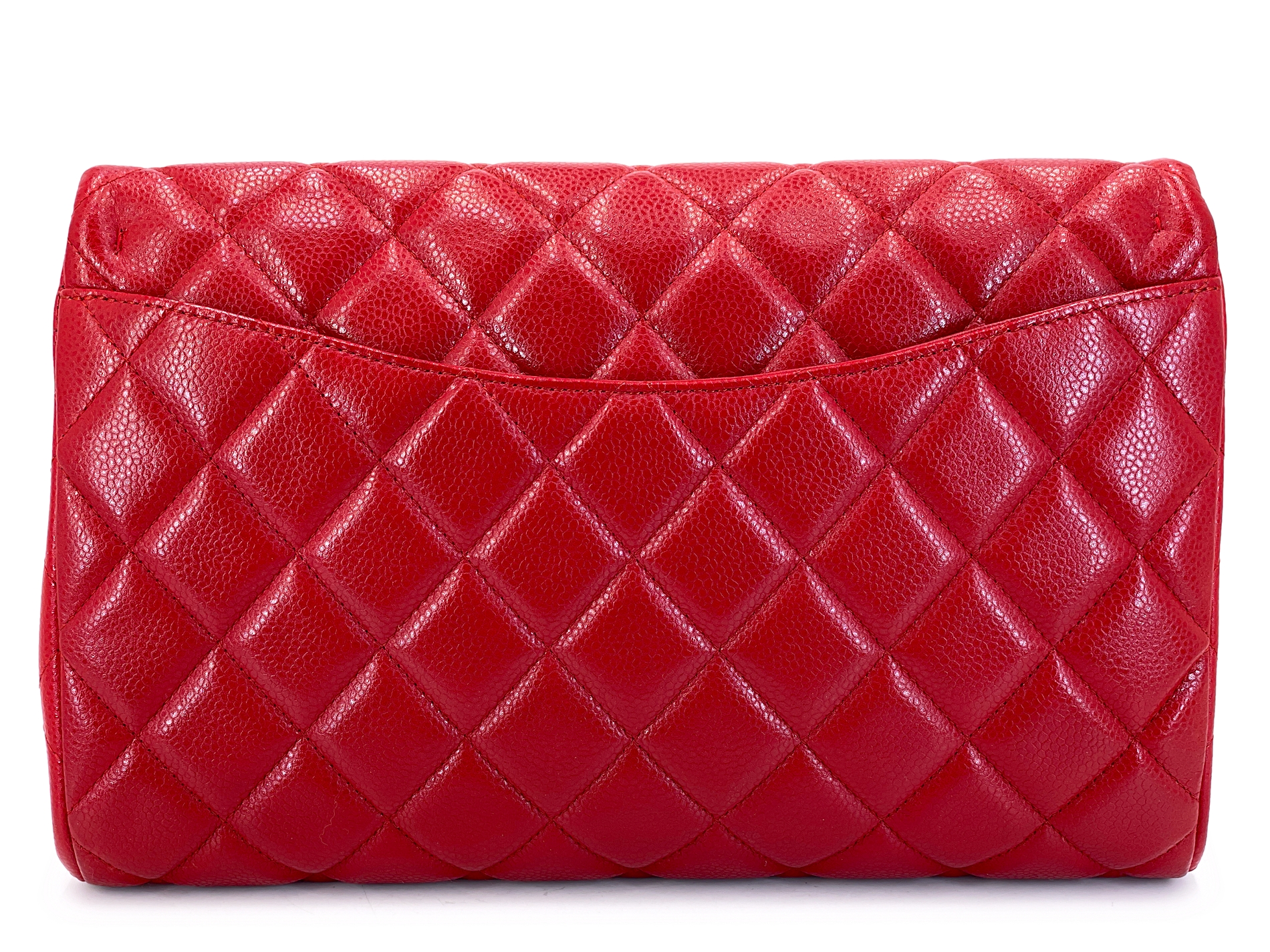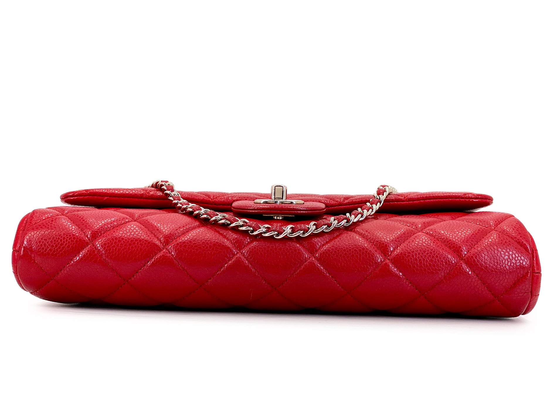Red Quilted Caviar Timeless Classic Clutch on Chain Flap Bag Silver Hardware, 2012-2013