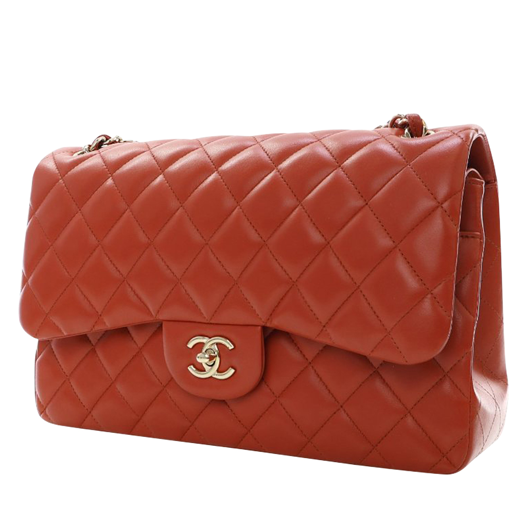 Red Quilted Lambskin Jumbo Classic Double Flap Bag Gold Hardware, 2020s