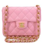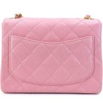 Sakura Pink Quilted Caviar Classic Square Mini Flap Bag Gold Hardware, 2004