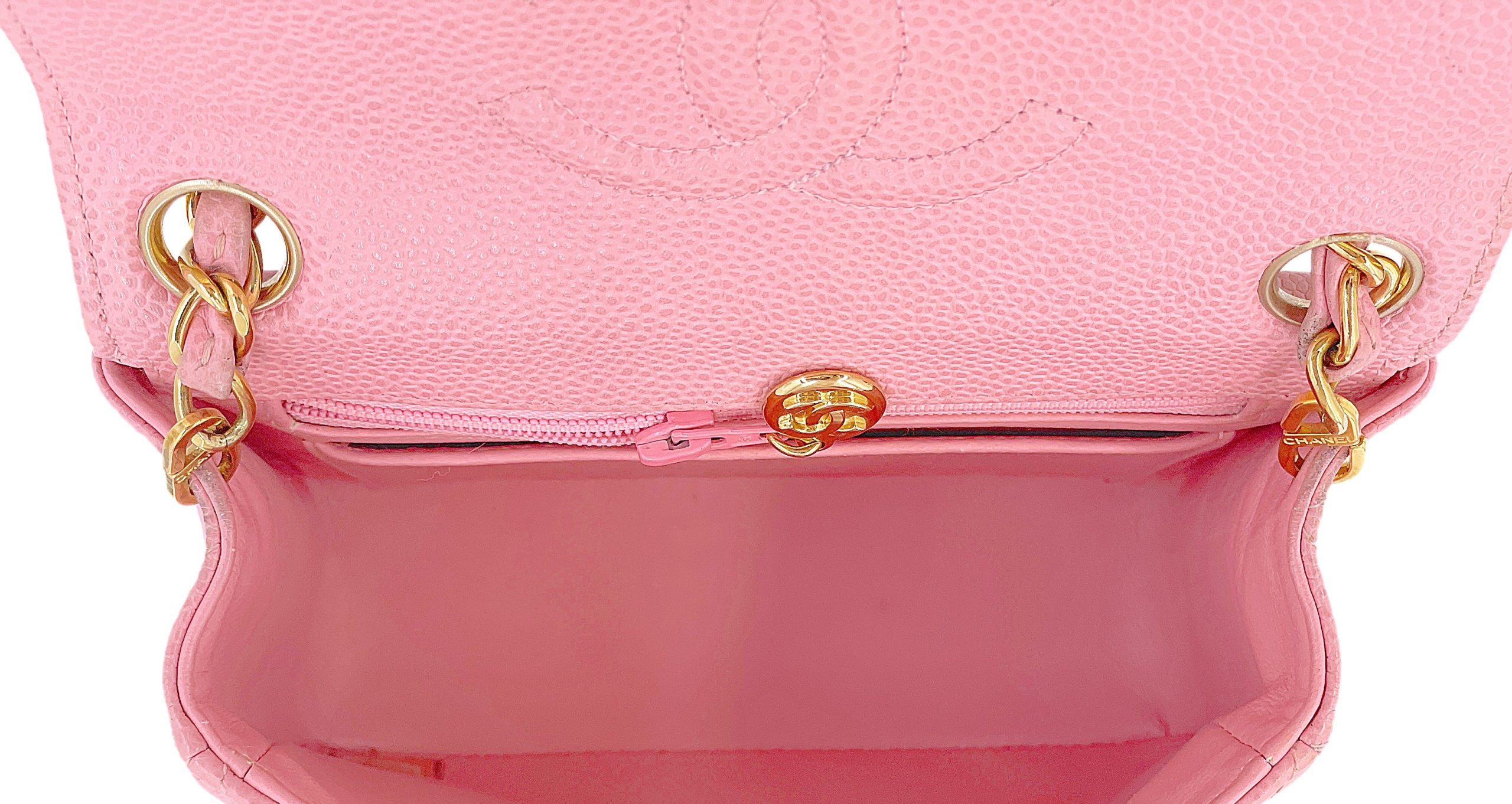 Chanel Sakura Pink Quilted Caviar Classic Square Mini Flap Bag Gold Hardware, 2004The interior is lined with tonal leatherIncludes dust bag and boxThis item is final sale