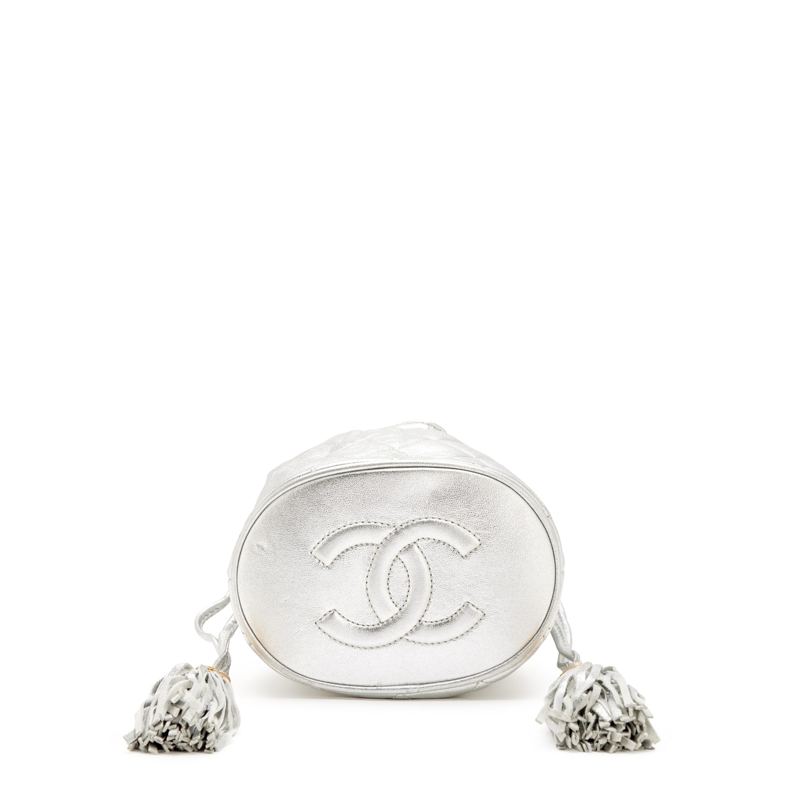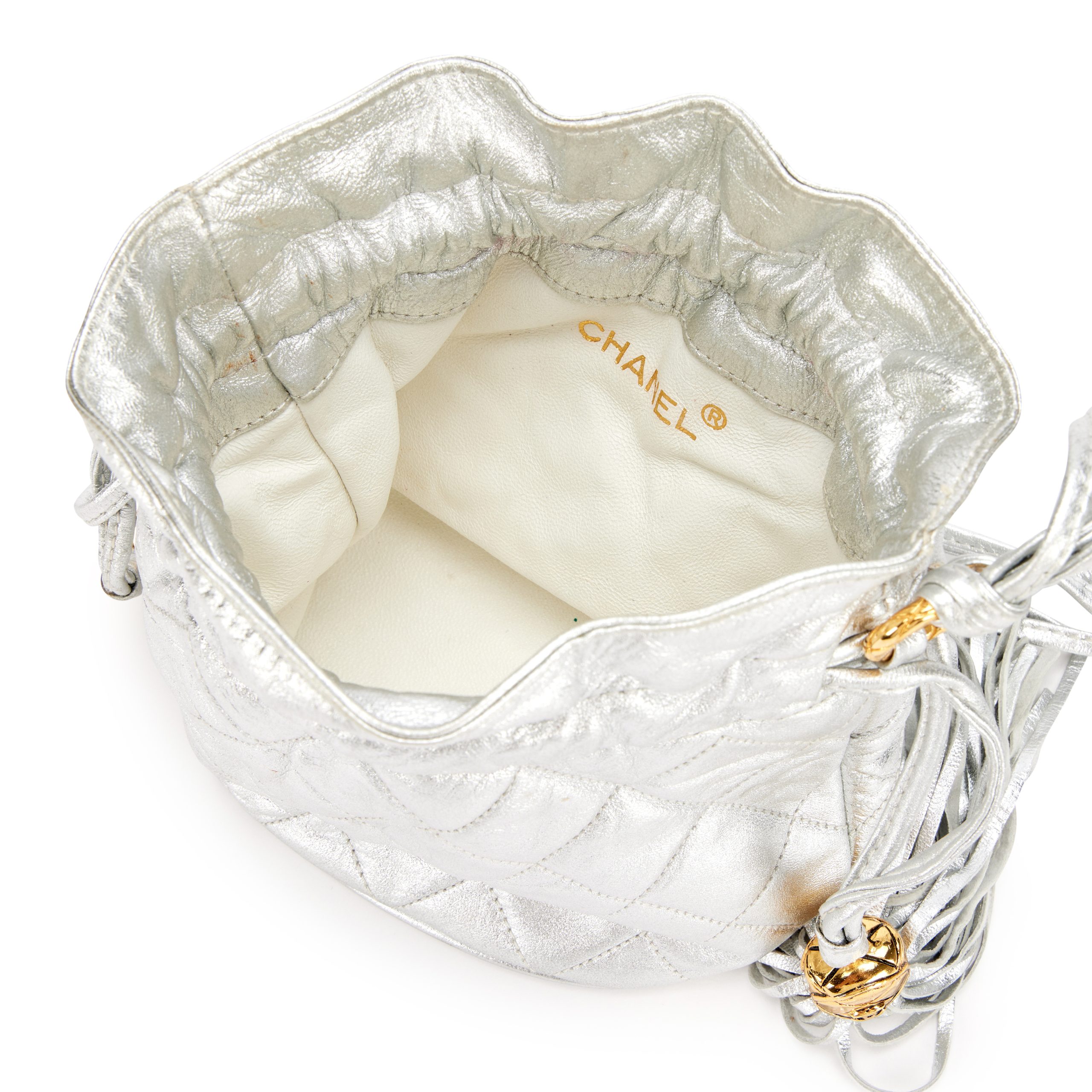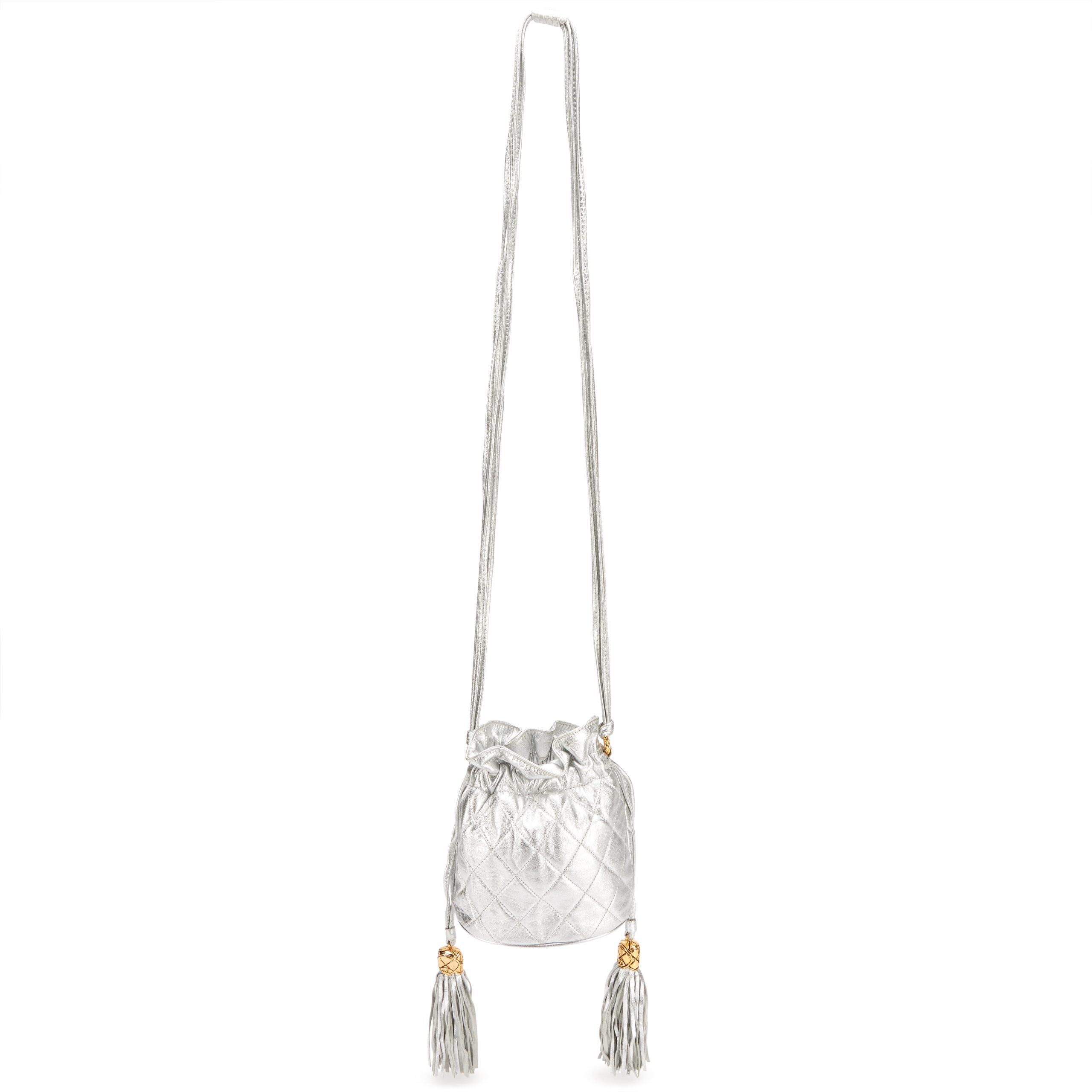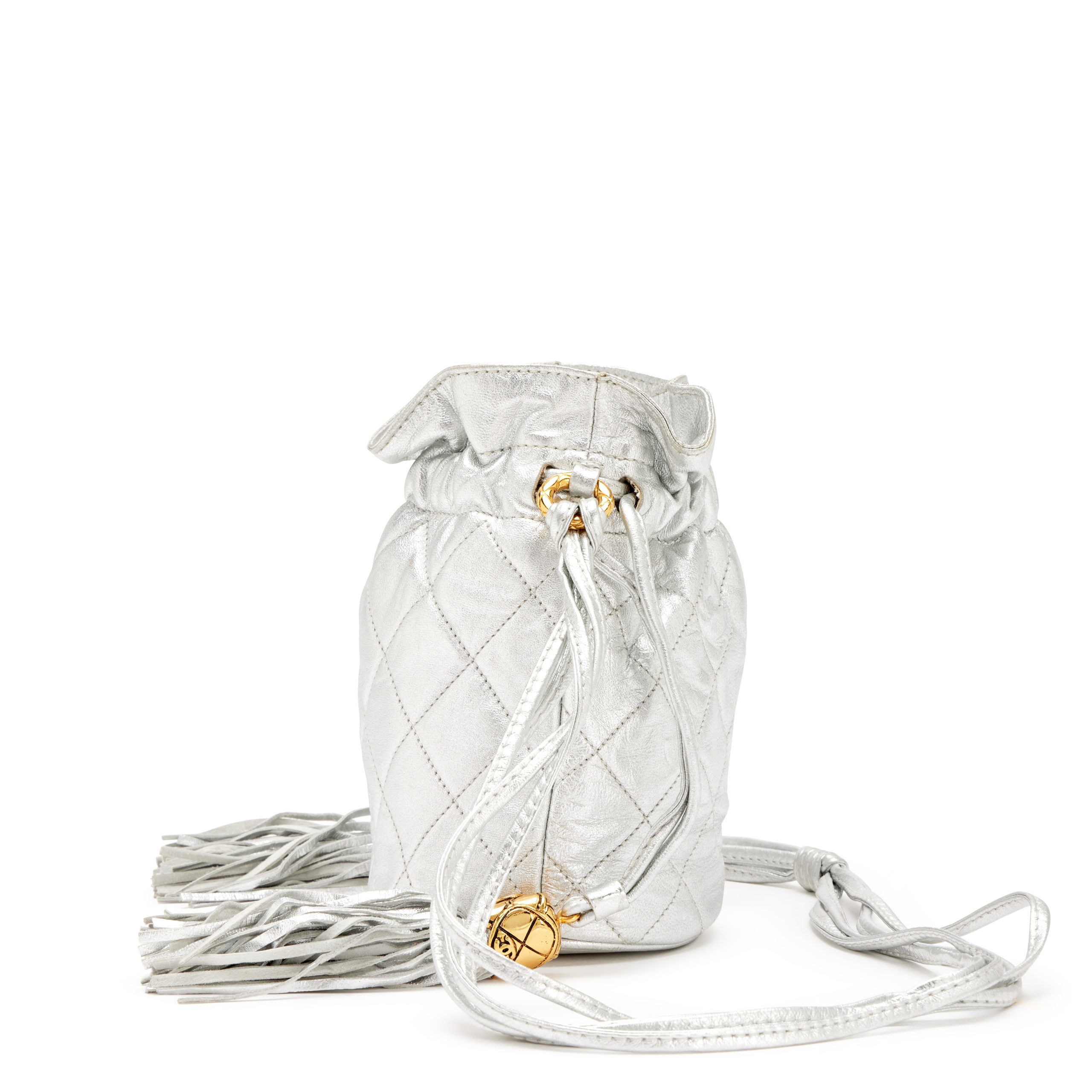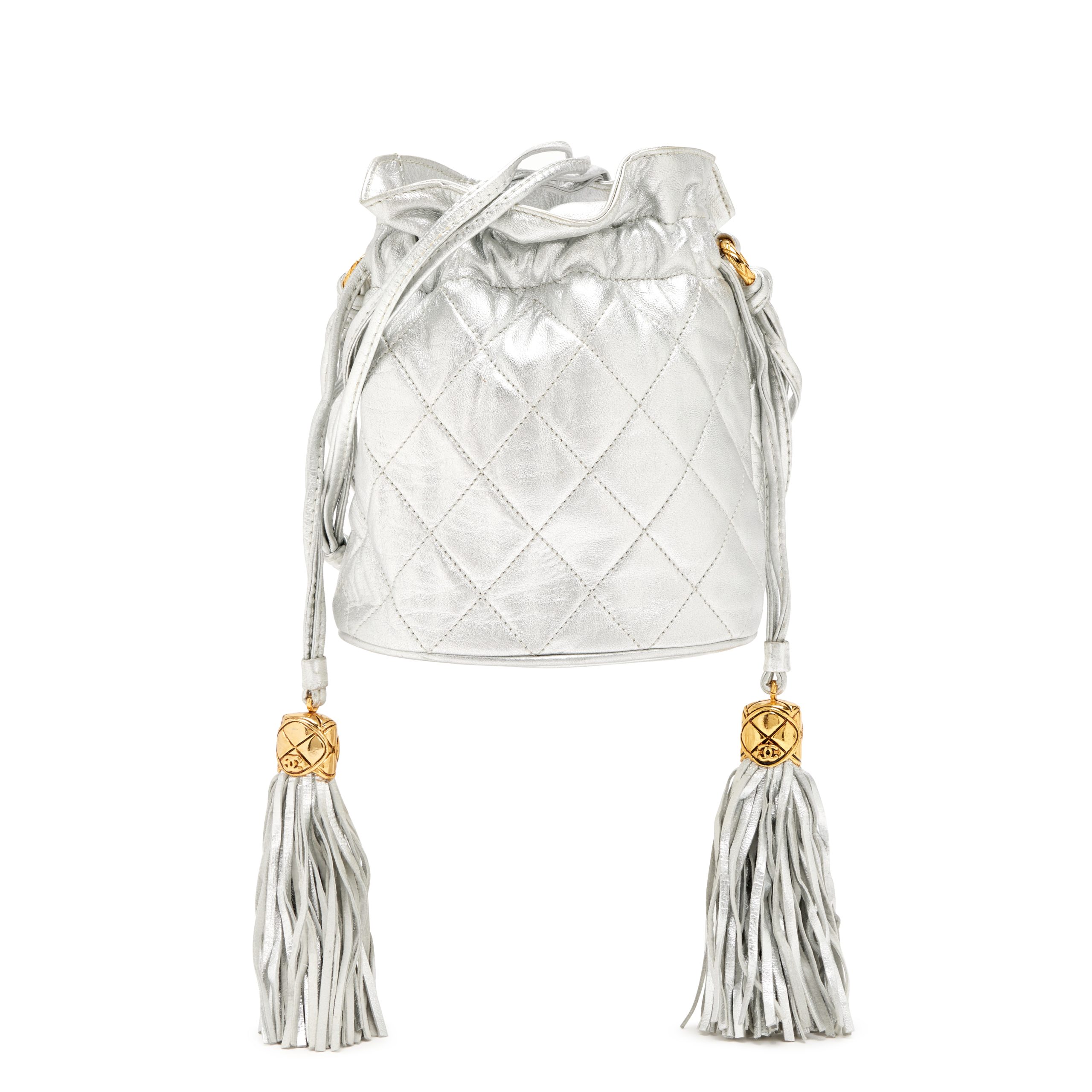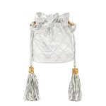 Chanel Silver Quilted Lambskin Drawstring Tassel Bag Gold Hardware, 1989-1991The interior is lined in a white leatherThis item is final sale