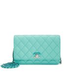 Chanel Turquoise Blue Quilted Lambskin Classic Wallet On Chain WOC Two Tone Blue and Silver Hardware, 2024The interior is lined in a tonal textile materialIncludes information booklet, felt protector, velvet pouch, and boxThis item is final sale