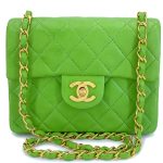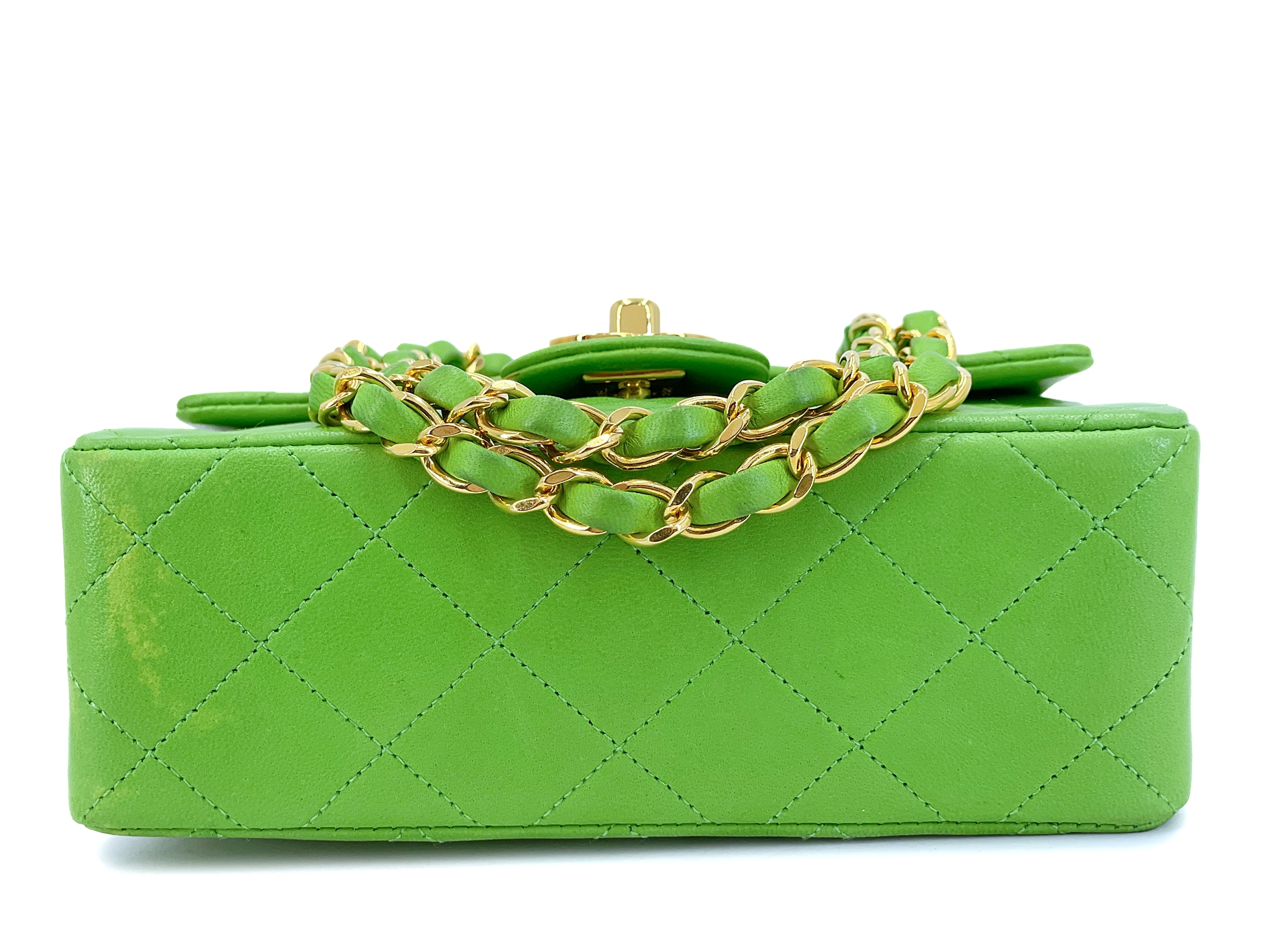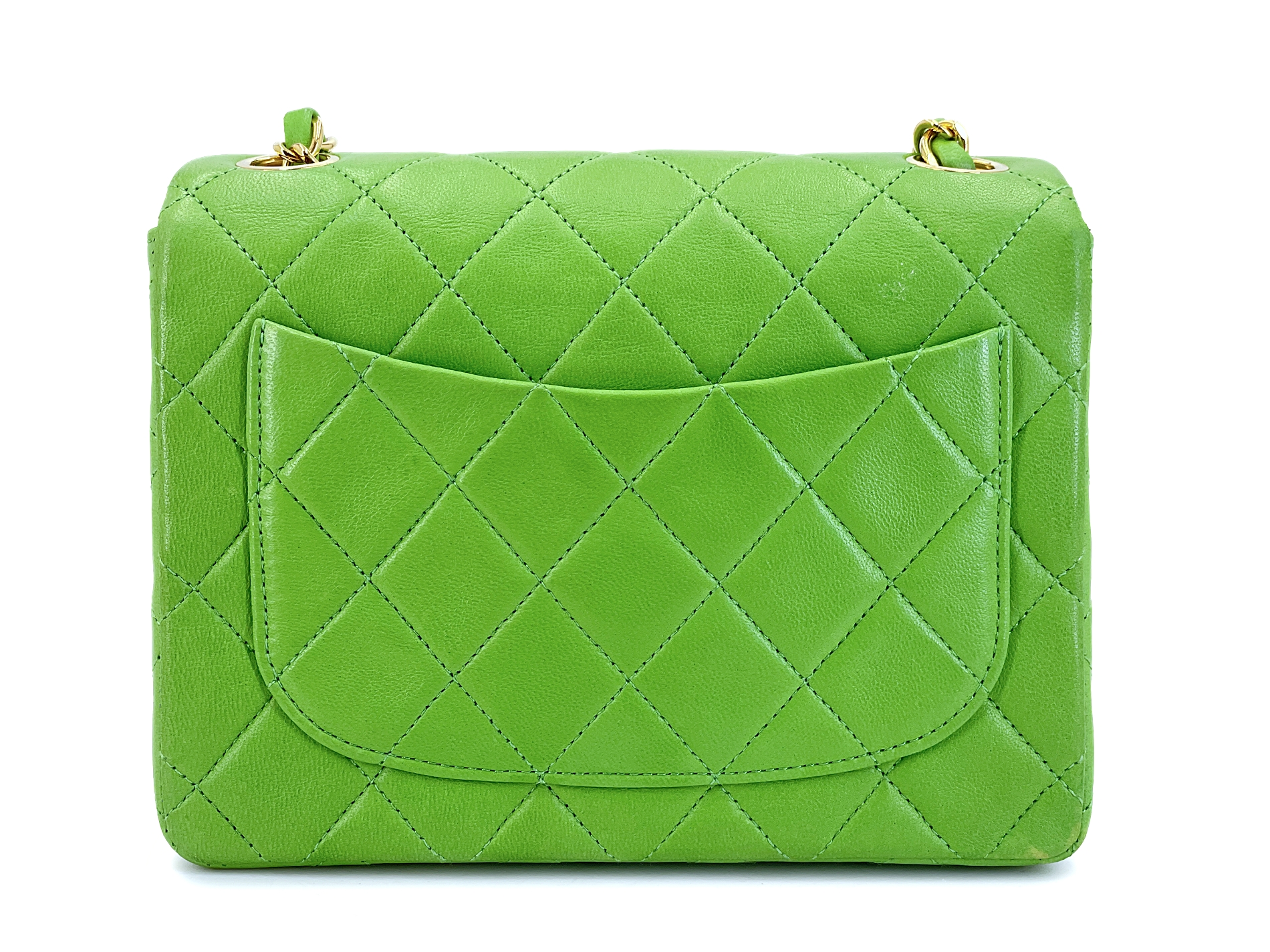 Vintage Apple Green Quilted Lambskin Mini Square Flap Bag Gold Hardware, 1989