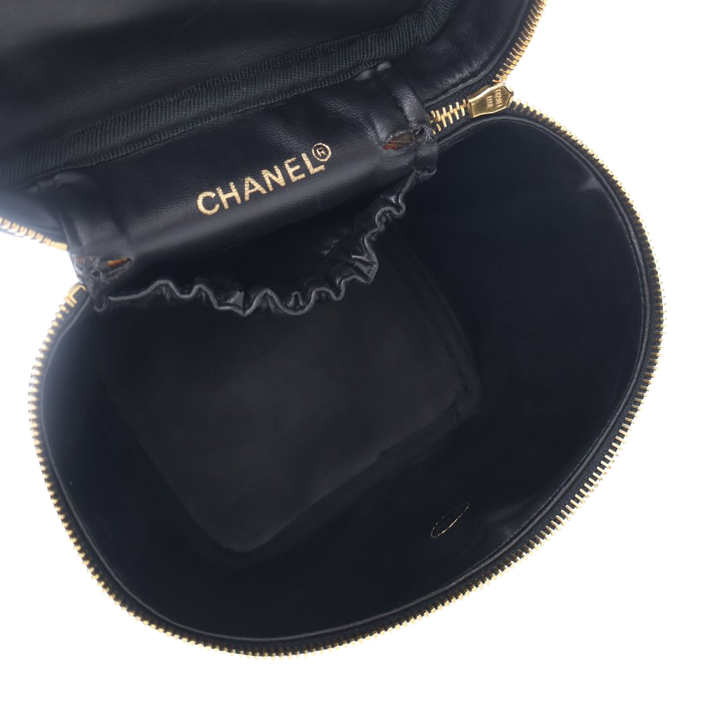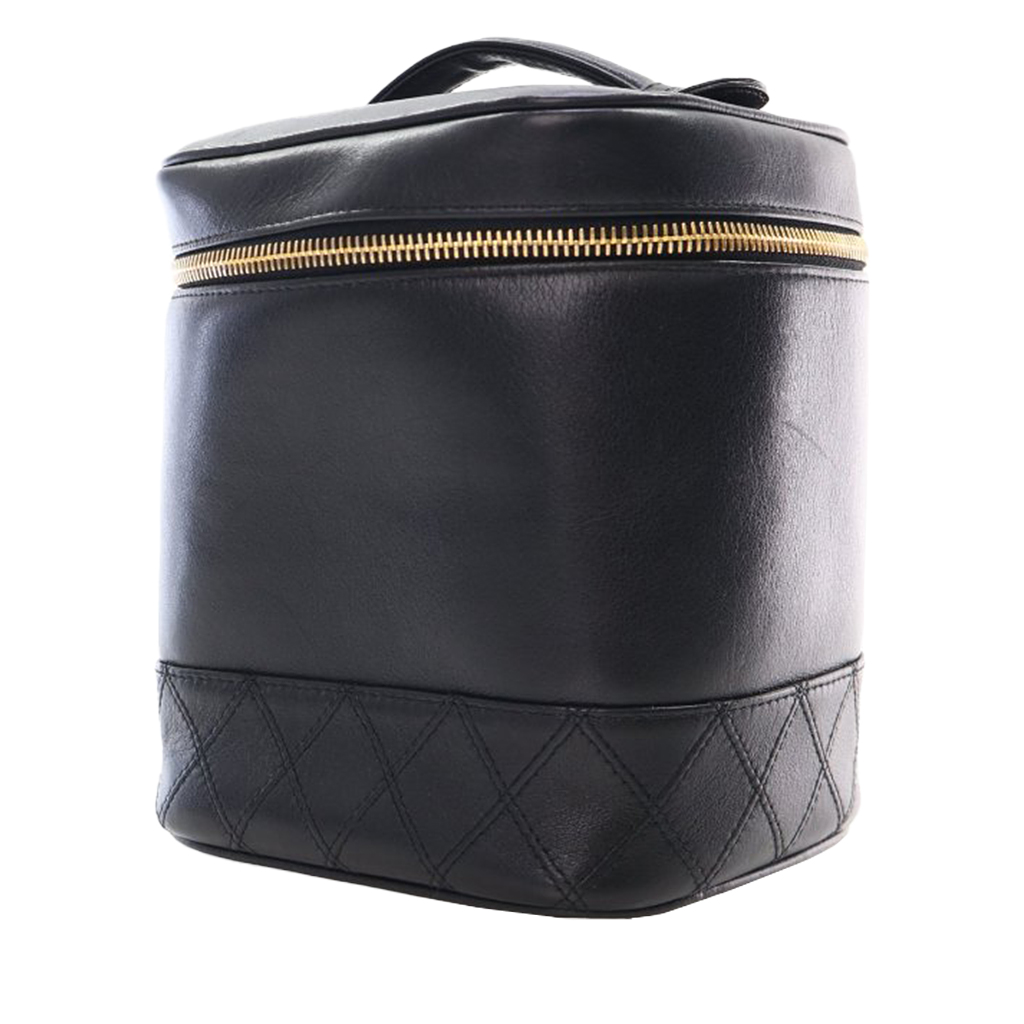 Chanel Vintage Black Calfskin Vanity Case Gold Hardware, 1996-1997The interior is lined in a tonal leatherThis item is final sale