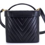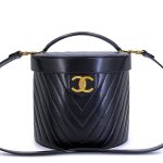 Chanel Vintage Black Chevron Quilted Lambskin Round Vanity Case Gold Hardware, 1991-1994The interior is lined in a tonal leatherIncludes authenticity cardThis item is final sale