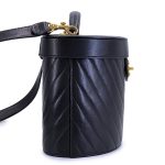 Vintage Black Chevron Quilted Lambskin Round Vanity Case Gold Hardware, 1991-1994