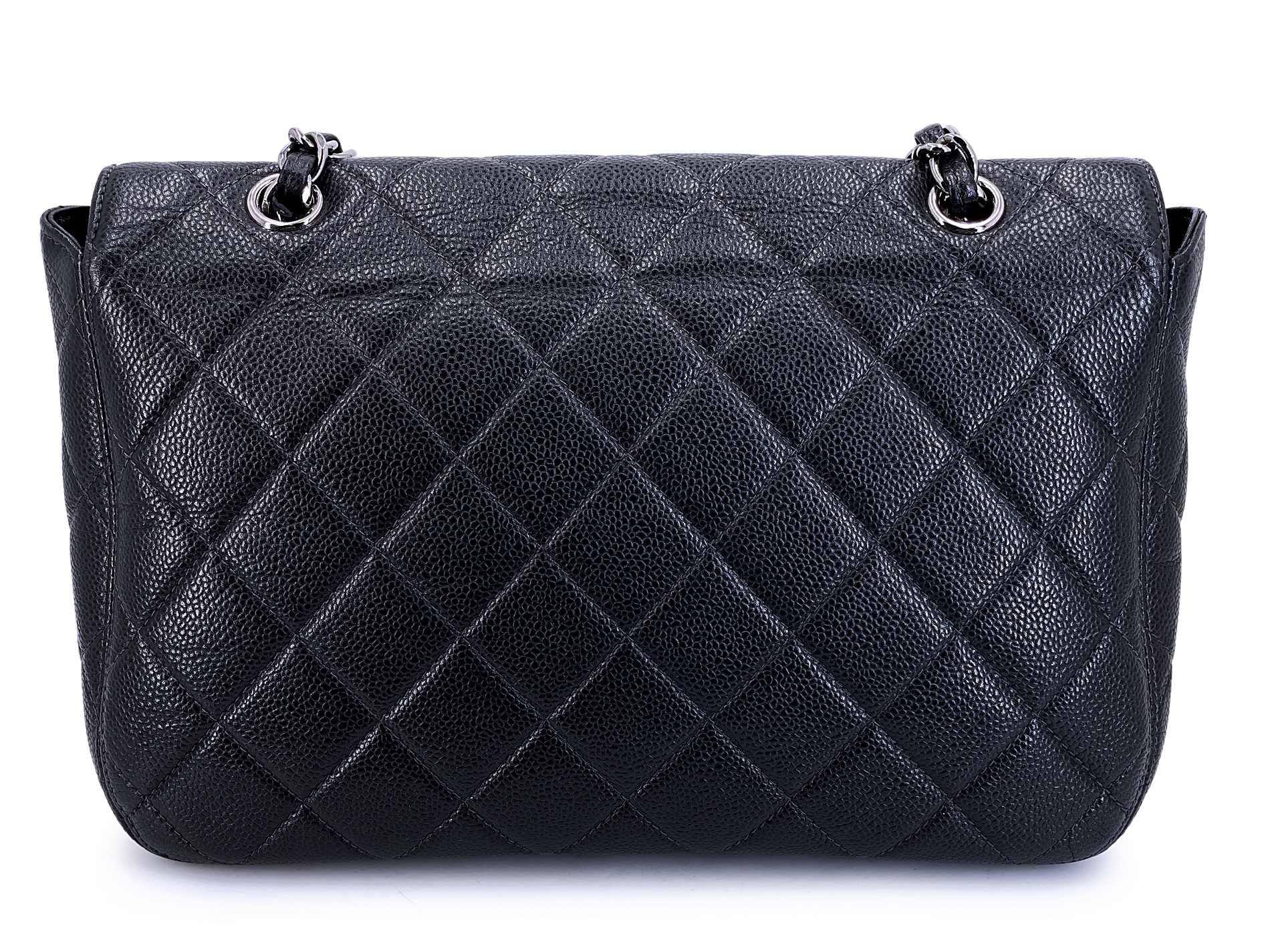 Chanel Vintage Black Quilted Caviar Jumbo Classic Flap Bag Ruthenium Hardware, 2001The interior is lined with tonal leatherThis item is final sale