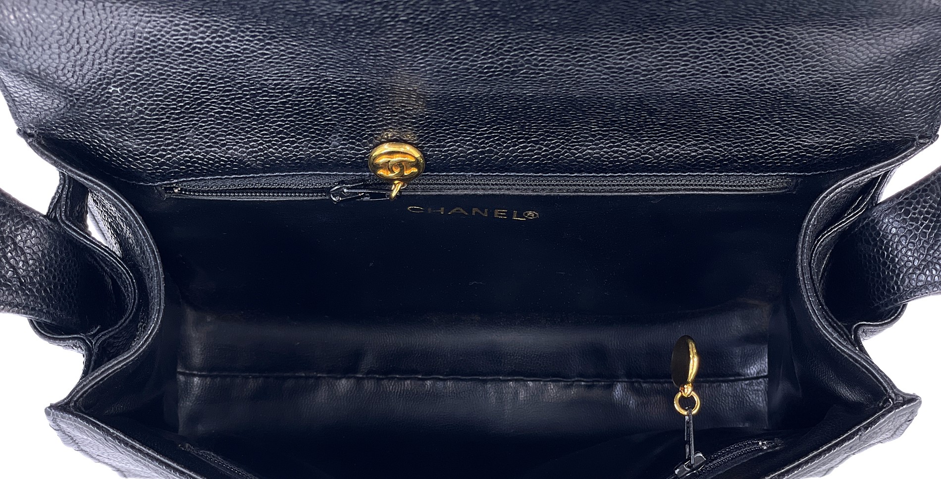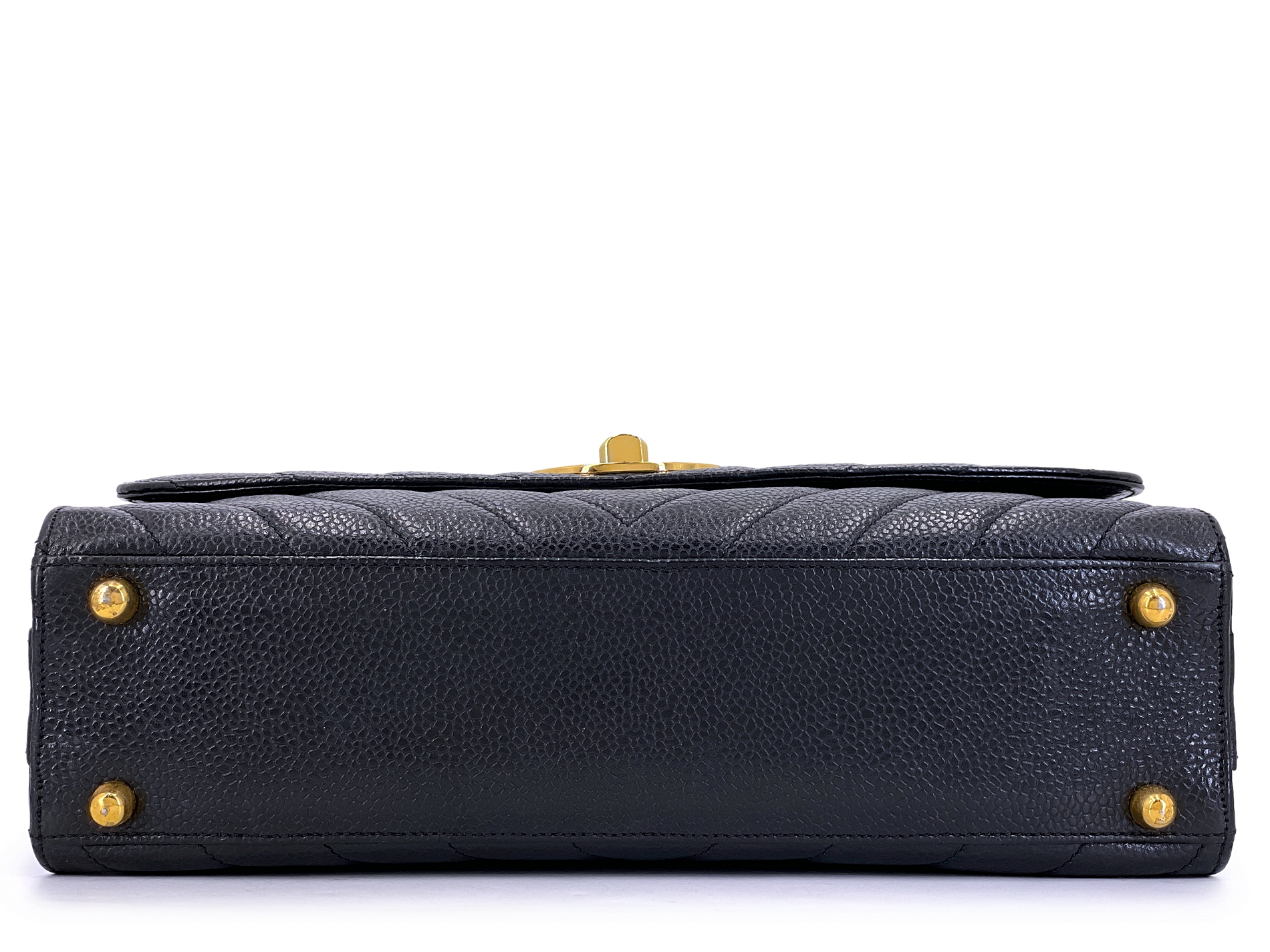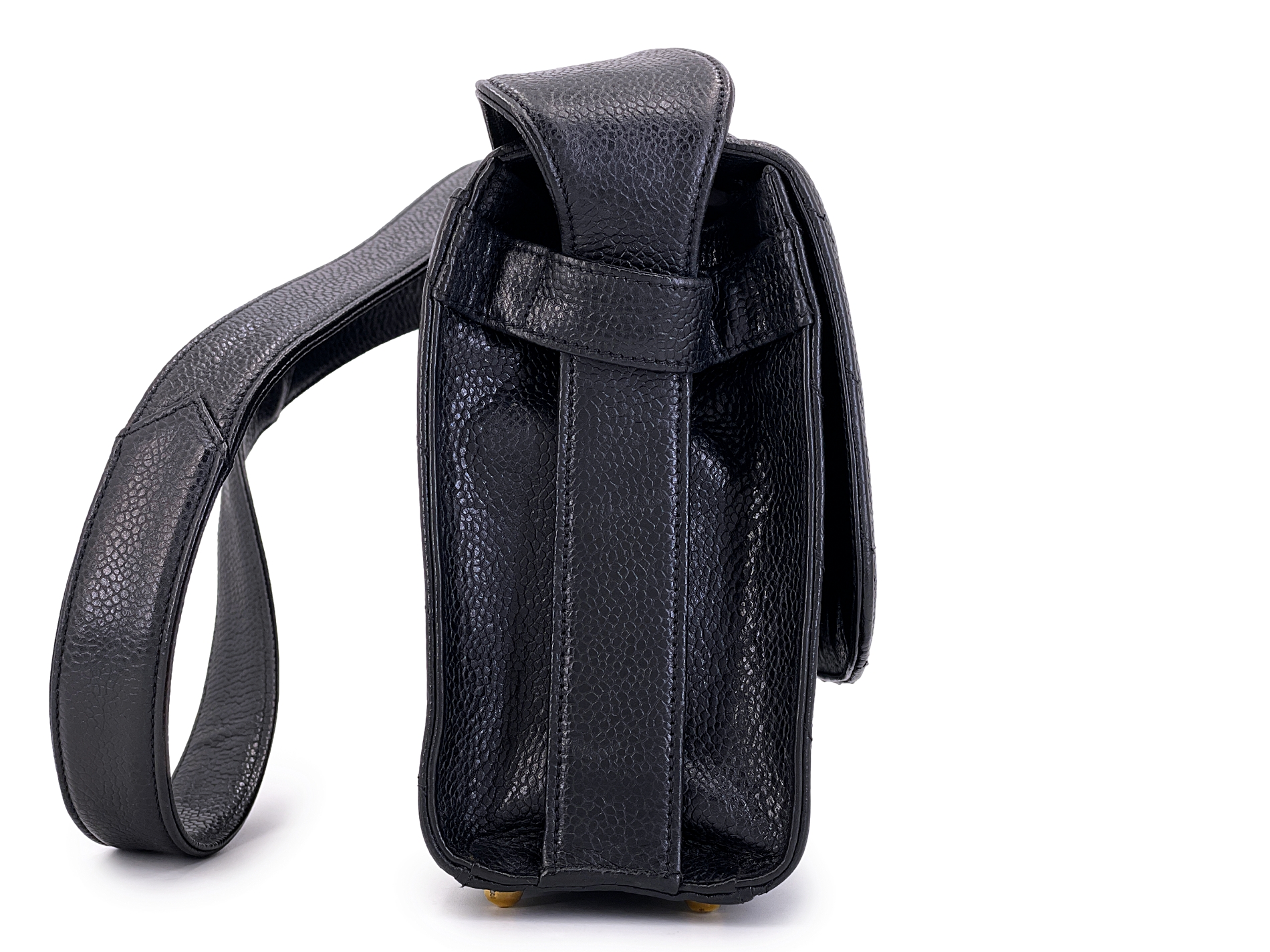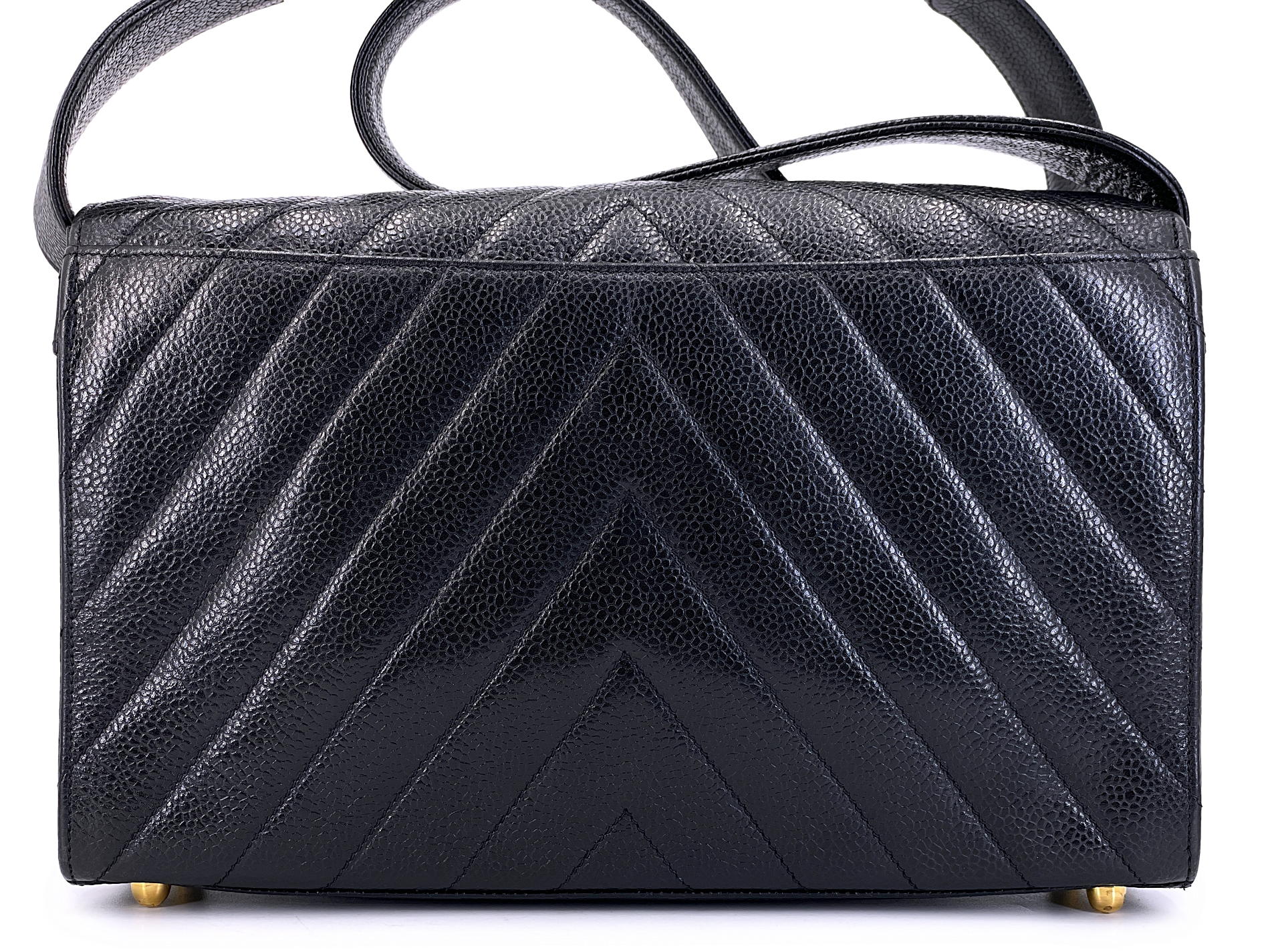 Vintage Black Quilted Chevron Caviar Encircled Flap Gold Hardware, 1992