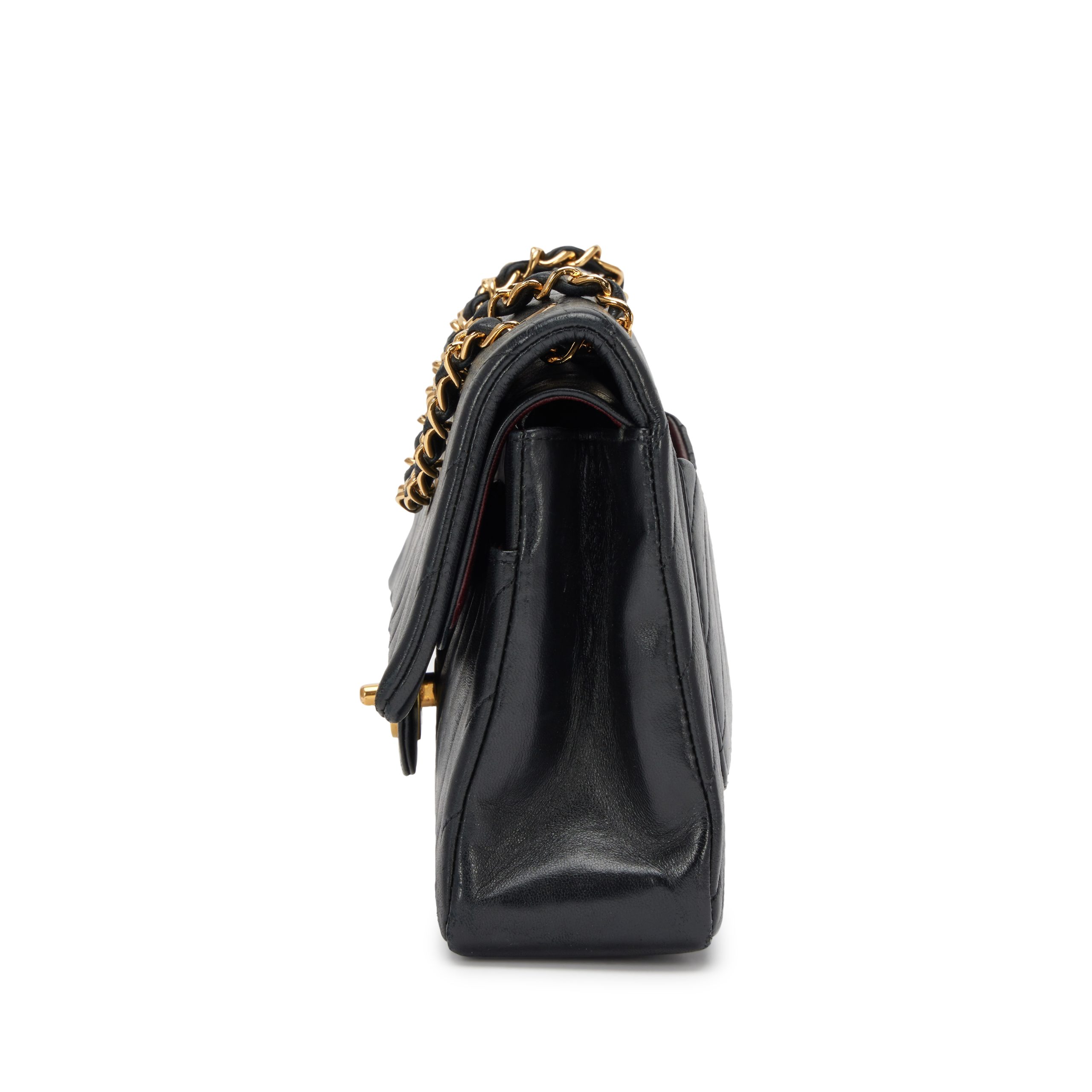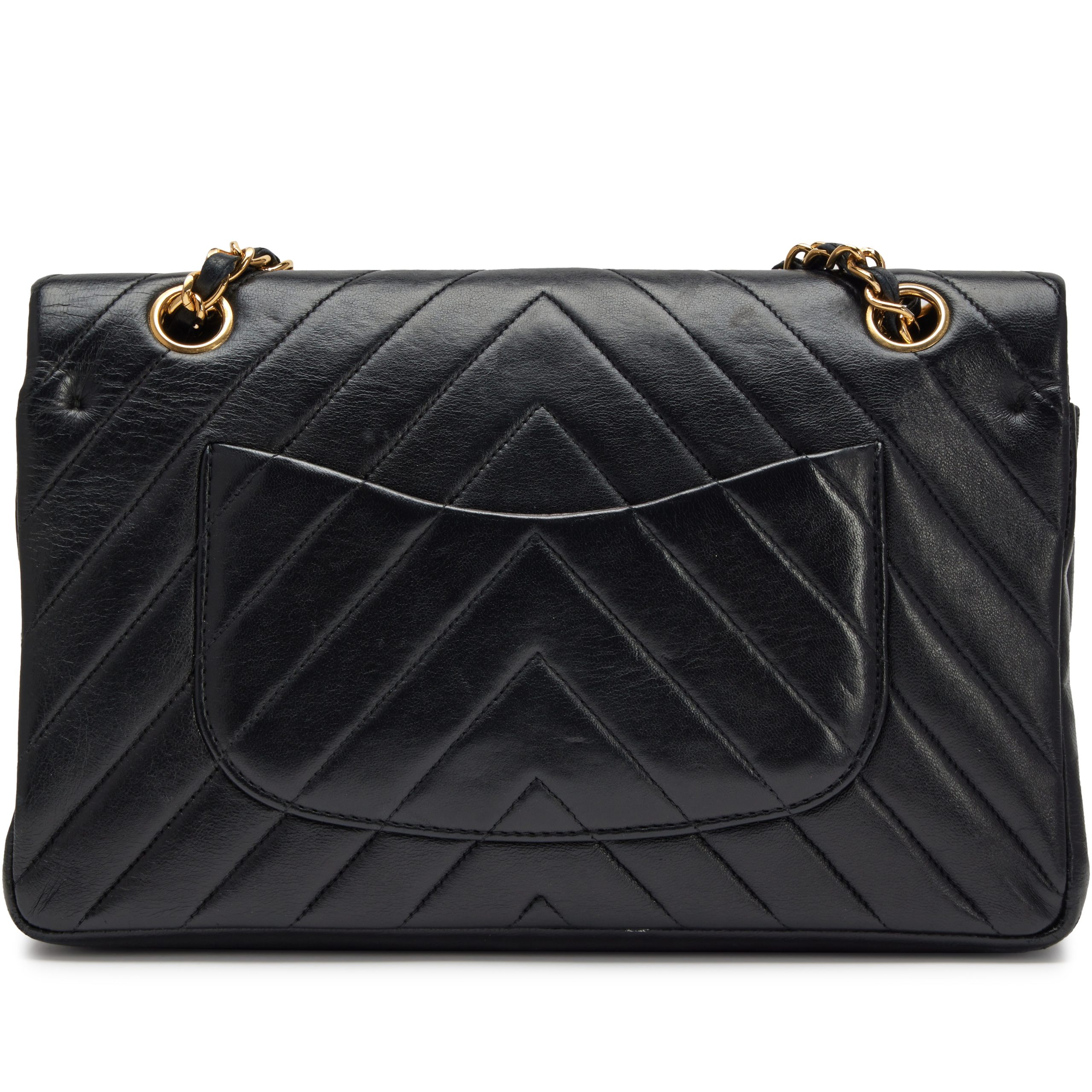 Vintage Black Quilted Chevron Lambskin Medium Double Flap Bag Gold Hardware, 1991-1994