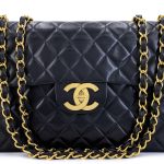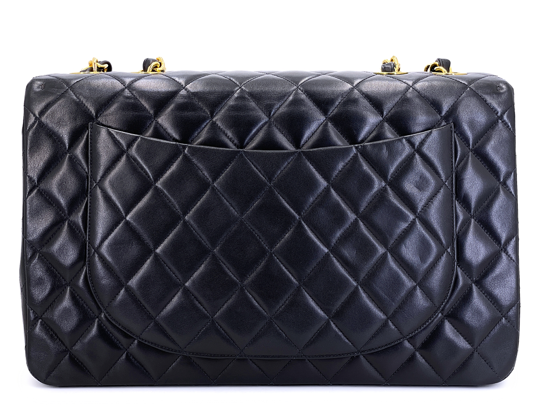 Vintage Black Quilted Lambskin Maxi Classic Flap Bag Gold Hardware, 1994