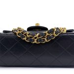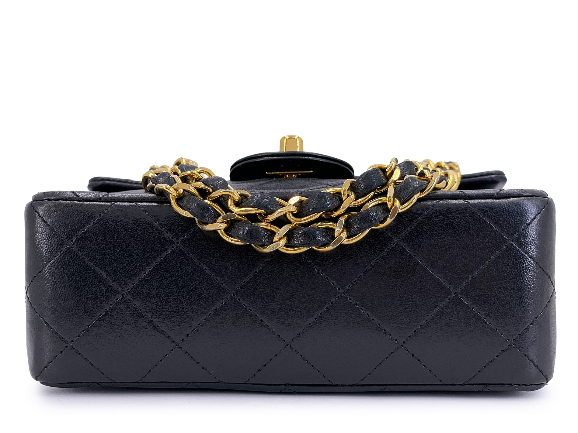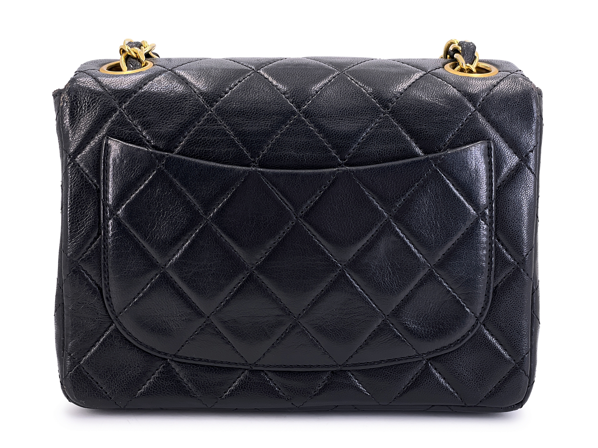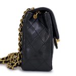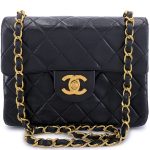 Vintage Black Quilted Lambskin Square Mini Flap Bag Gold Hardware, 1989-1991