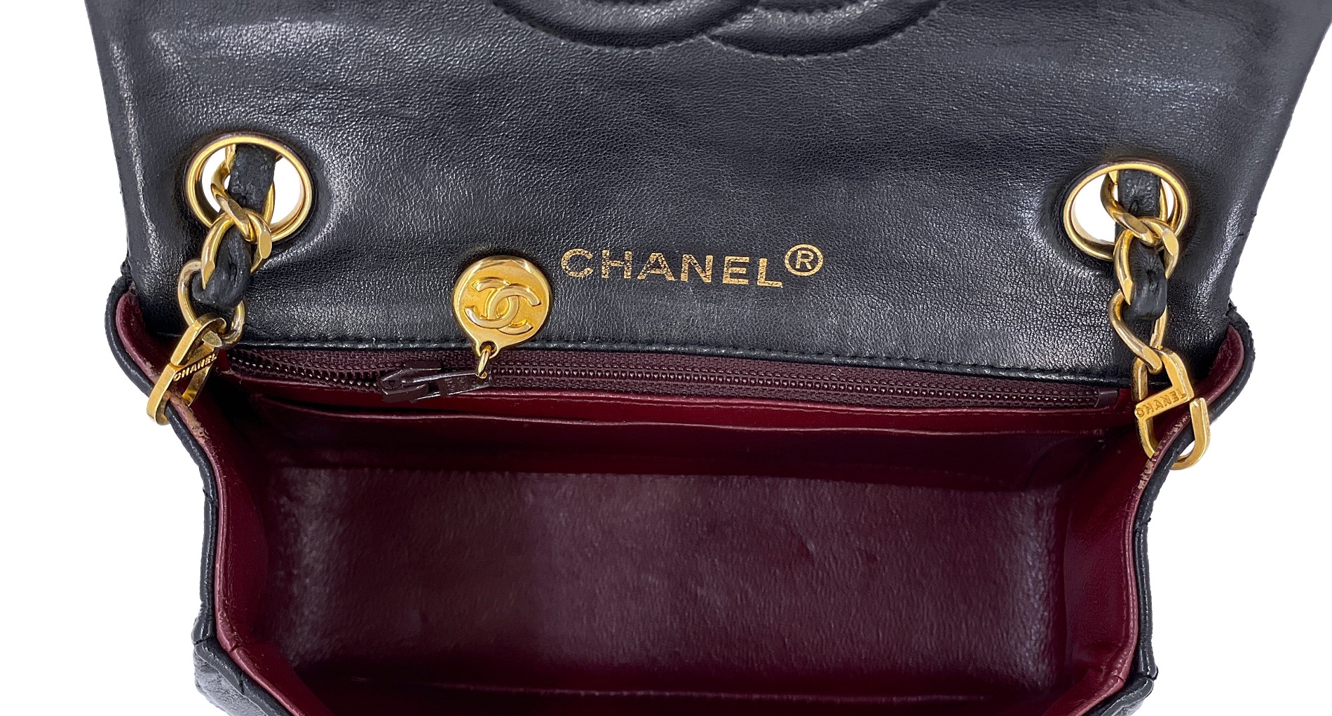 Chanel Vintage Black Quilted Lambskin Square Mini Flap Bag Gold Hardware, 1989-1991The interior is lined in a burgundy leatherIncludes authenticity cardThis item is final sale