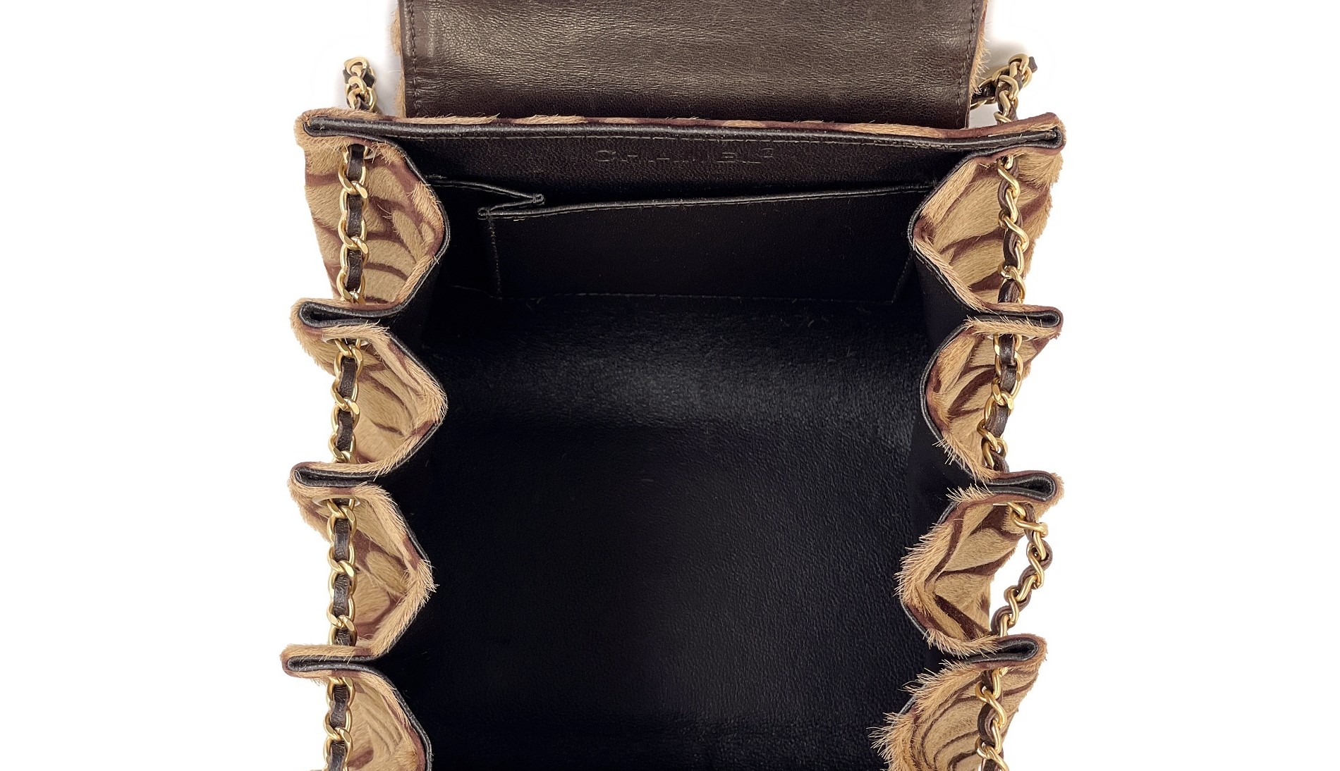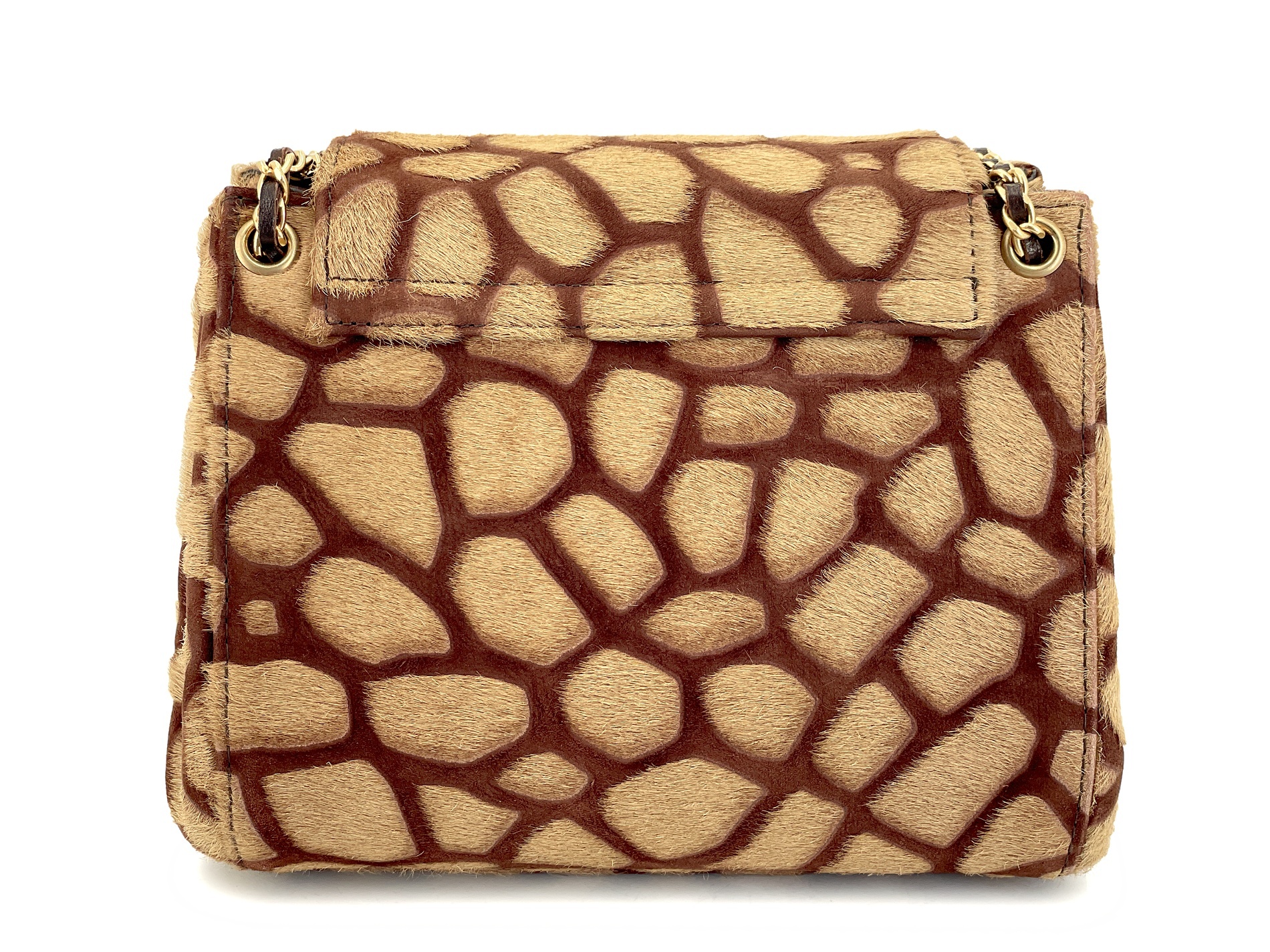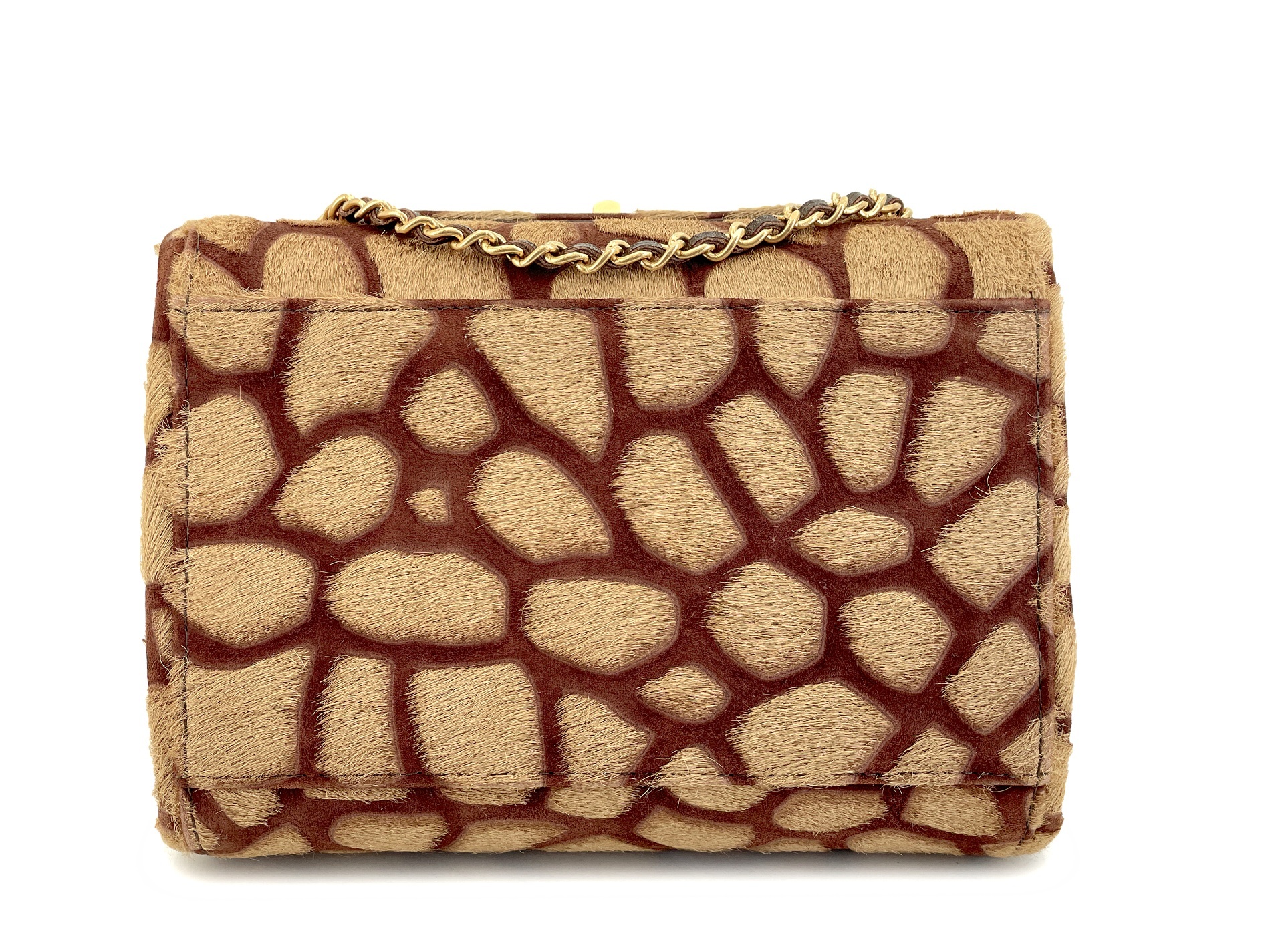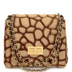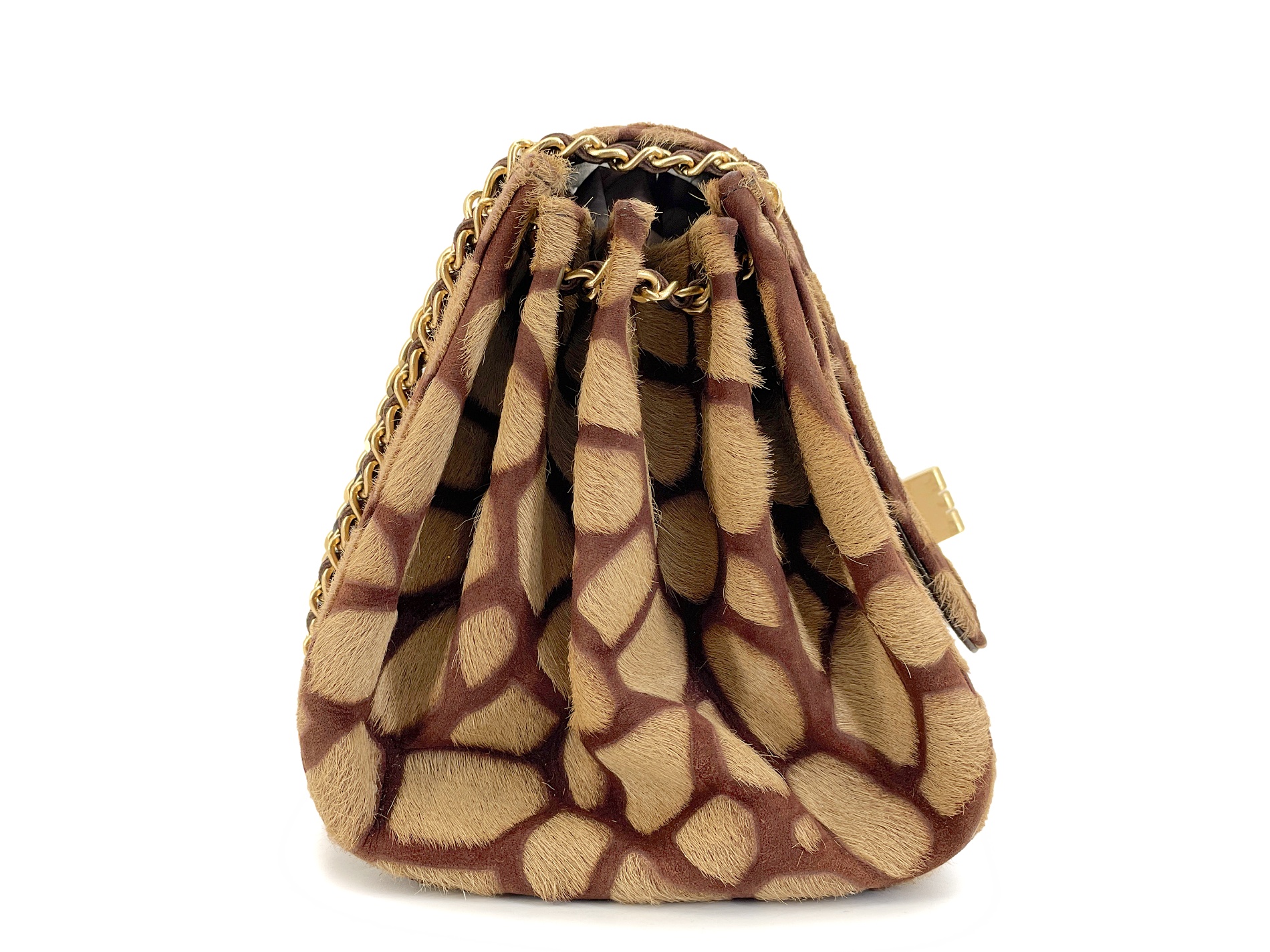 Vintage Brown and Beige Giraffe Pony Hair Small Accordion Reissue Flap Bag Gold Hardware, 2000