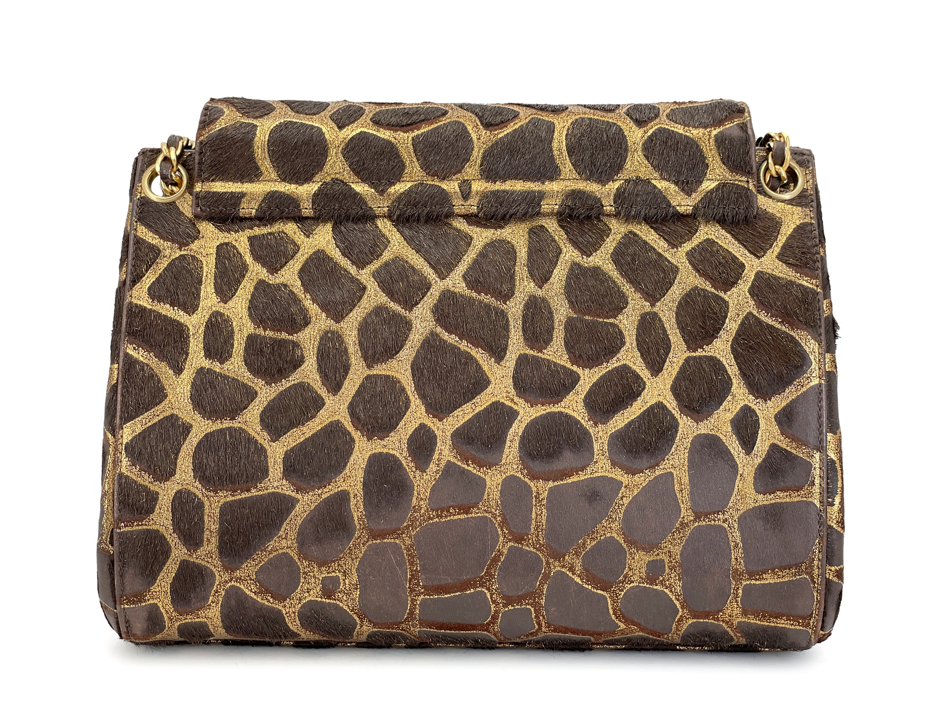 Vintage Brown Giraffe Pony Hair Medium Accordion Flap Bag Gold Hardware, 2000