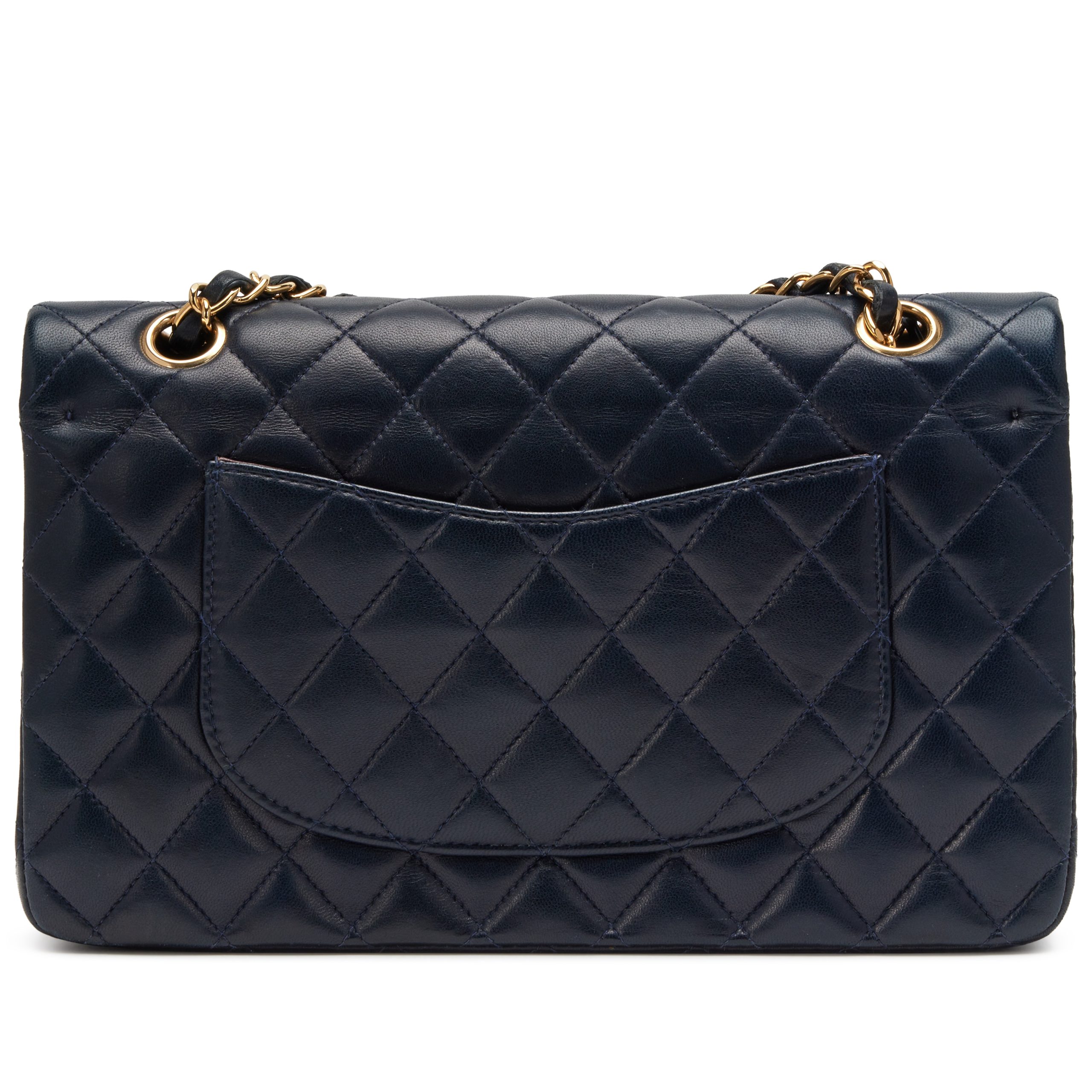 Vintage Navy Blue Quilted Lambskin Medium Classic Double Flap Bag Gold Hardware, 2003-2004