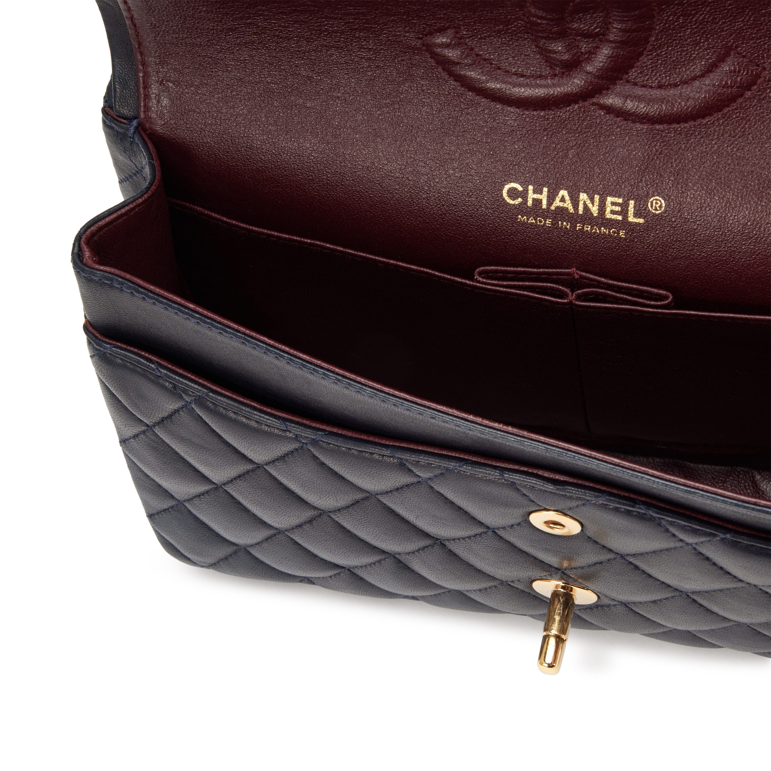 Chanel Vintage Navy Blue Quilted Lambskin Medium Classic Double Flap Bag Gold Hardware, 2003-2004The interior is lined in a burgundy leatherIncludes authenticity card, care booklet, dust bag, and boxThis item is final sale