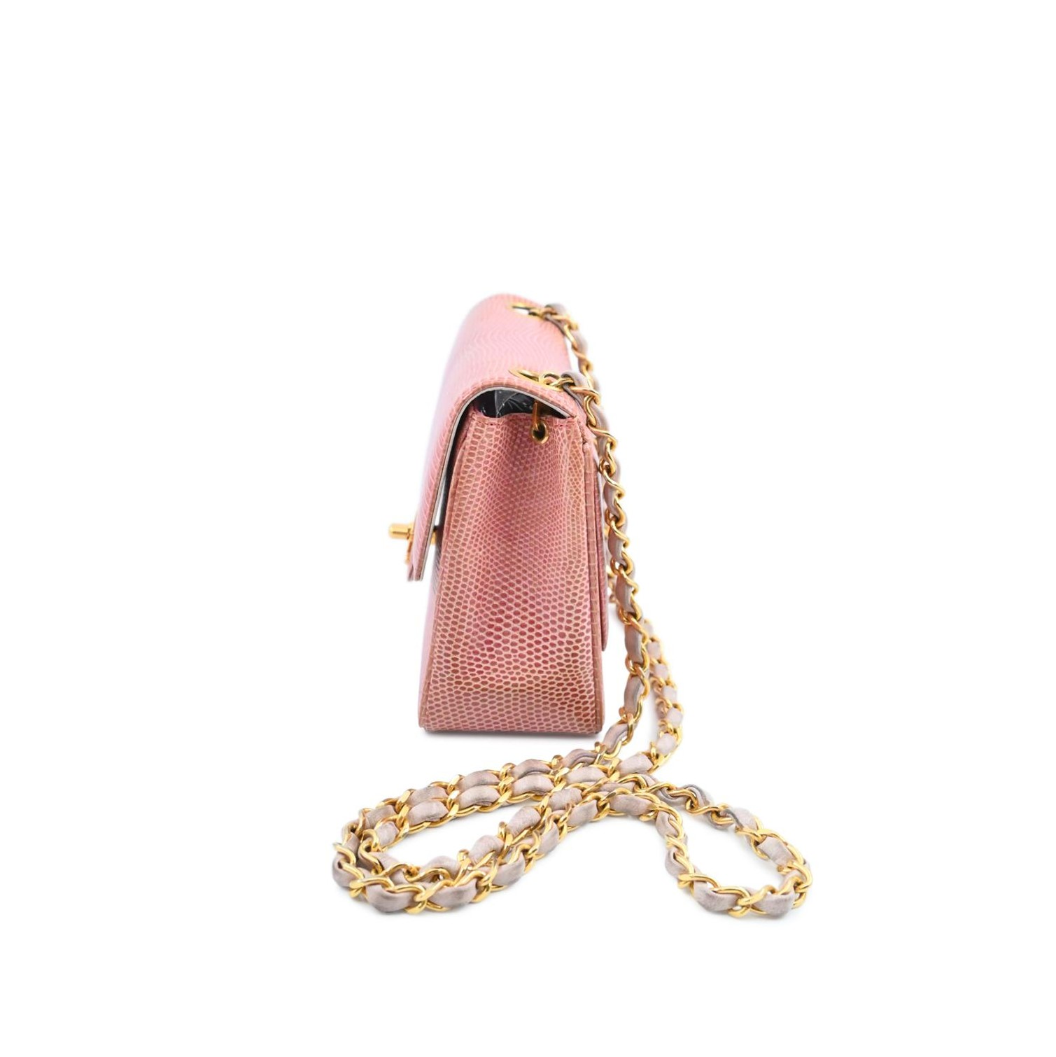 Vintage Pink Lizard Mini Square Flap Bag Gold Hardware, 1989-1991