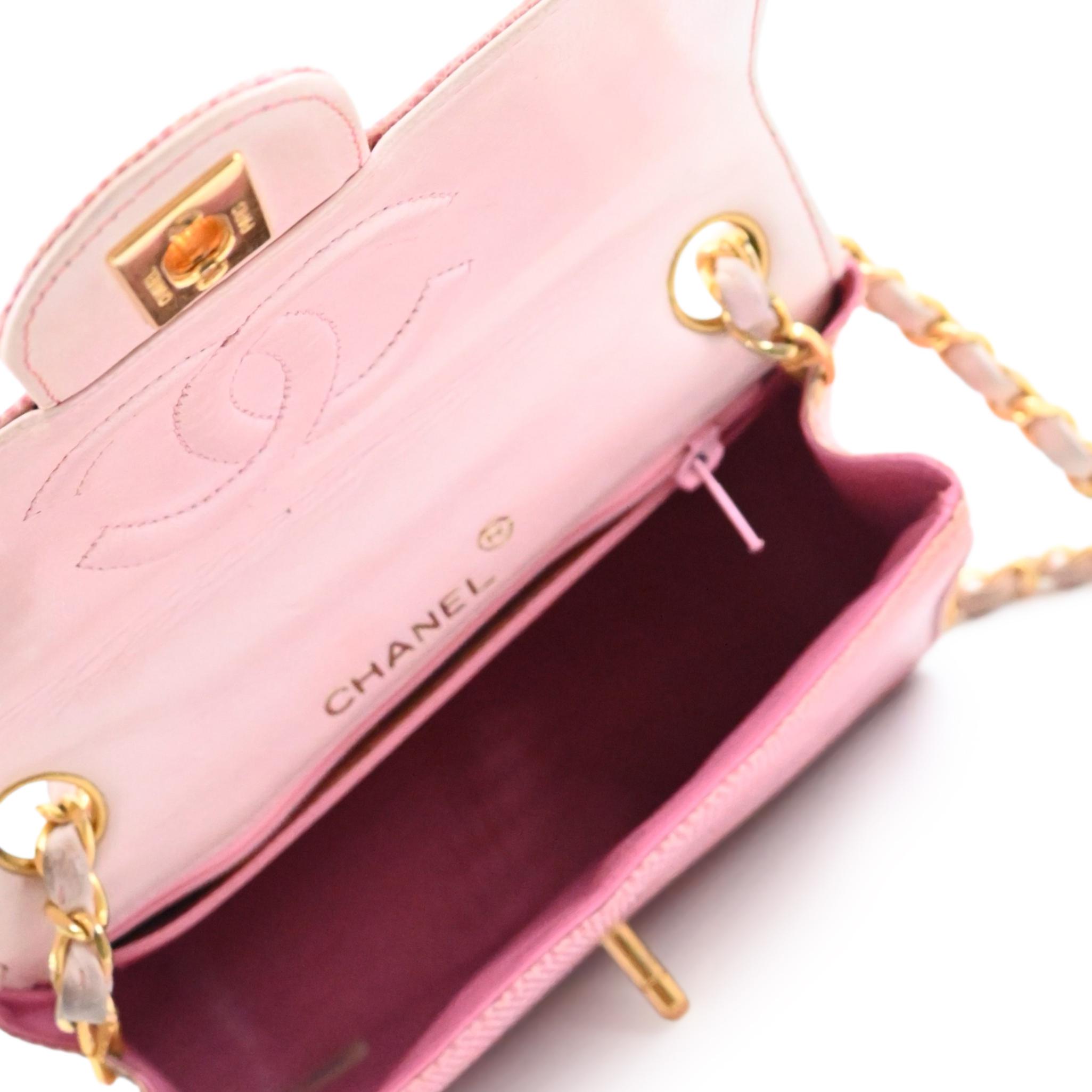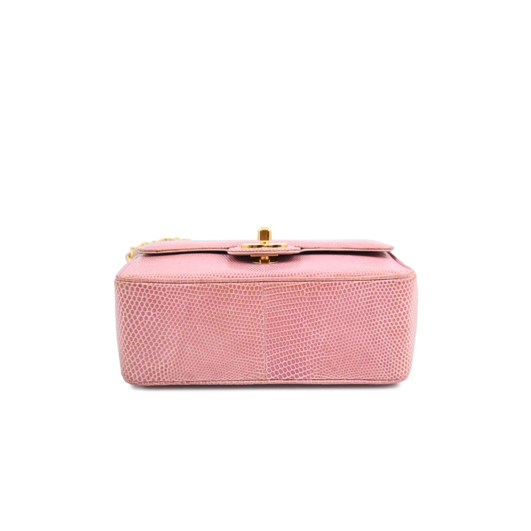 Vintage Chanel Pink Lizard Mini Square Flap Bag Gold Hardware, 1989-1991The interior is lined in a Pink leatherThis item is final sale