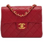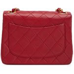 Vintage Red Quilted Lambskin Mini Square Flap Bag Gold Hardware, 1989-1991