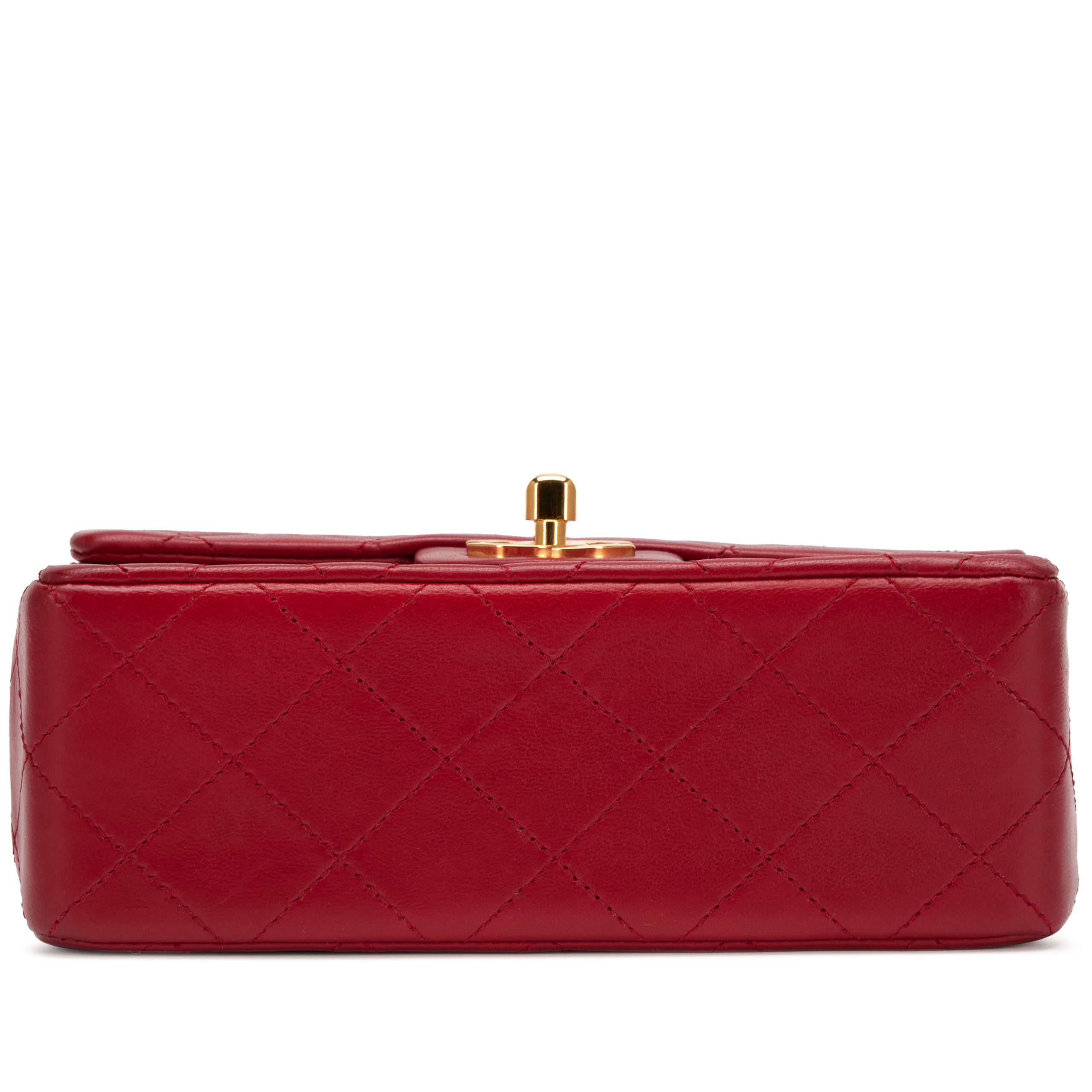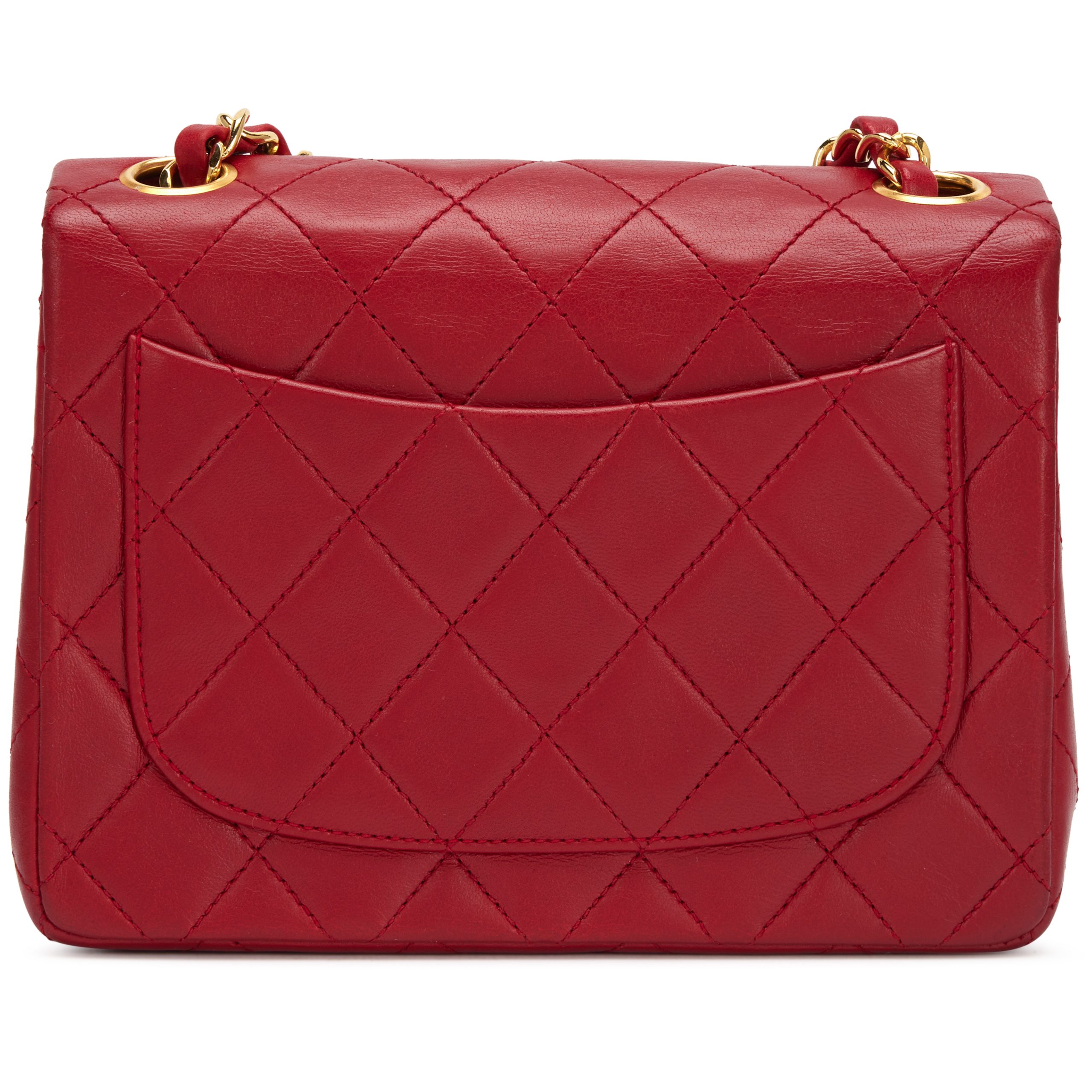 Chanel Vintage Red Quilted Lambskin Mini Square Flap Bag Gold Hardware, 1989-1991The interior is lined in a tonal leatherIncludes dust bagThis item is final sale