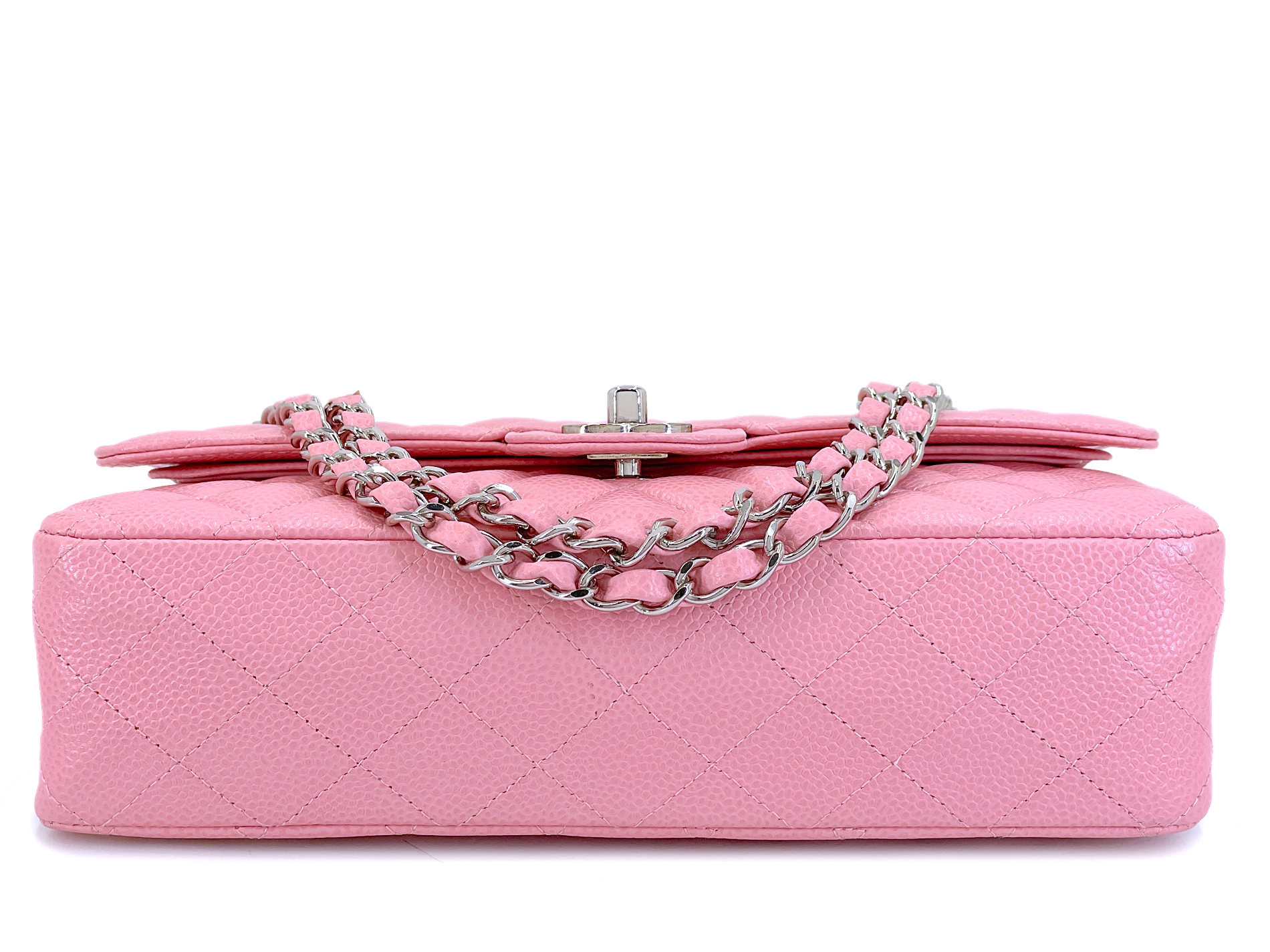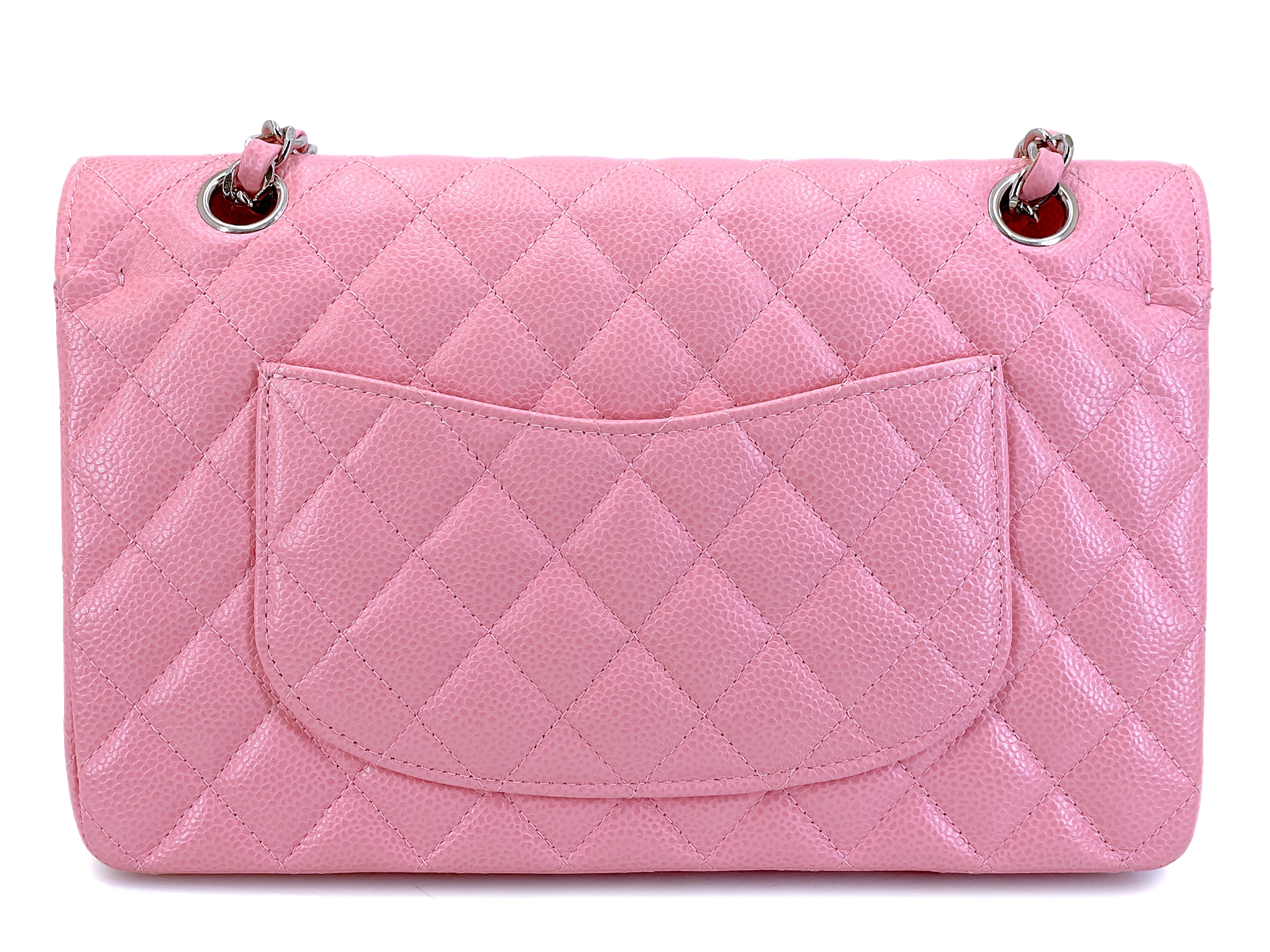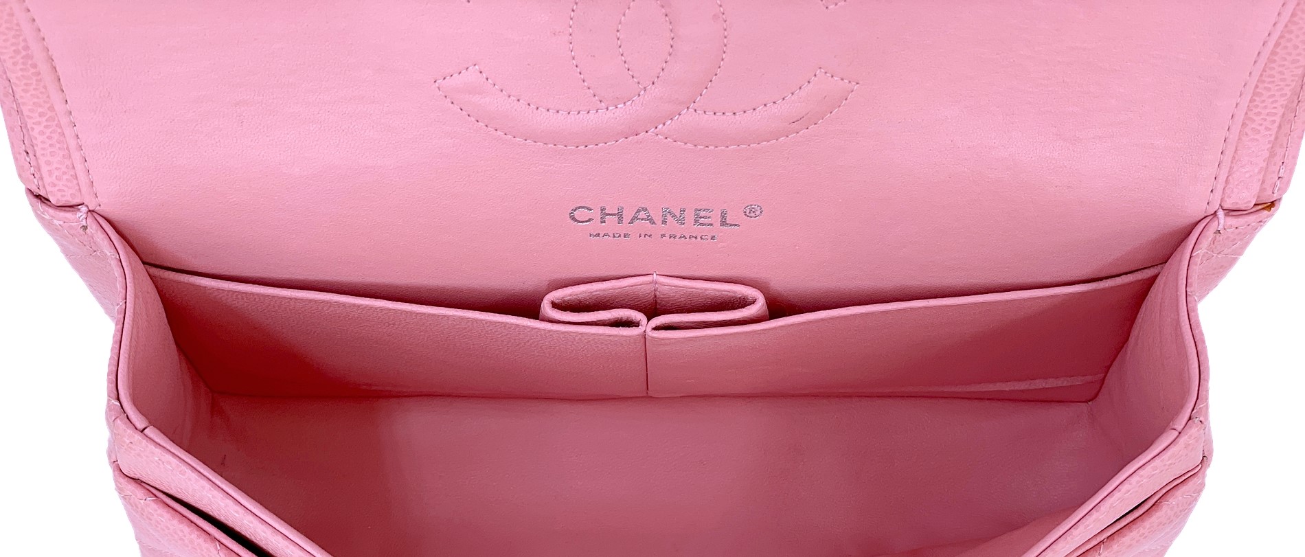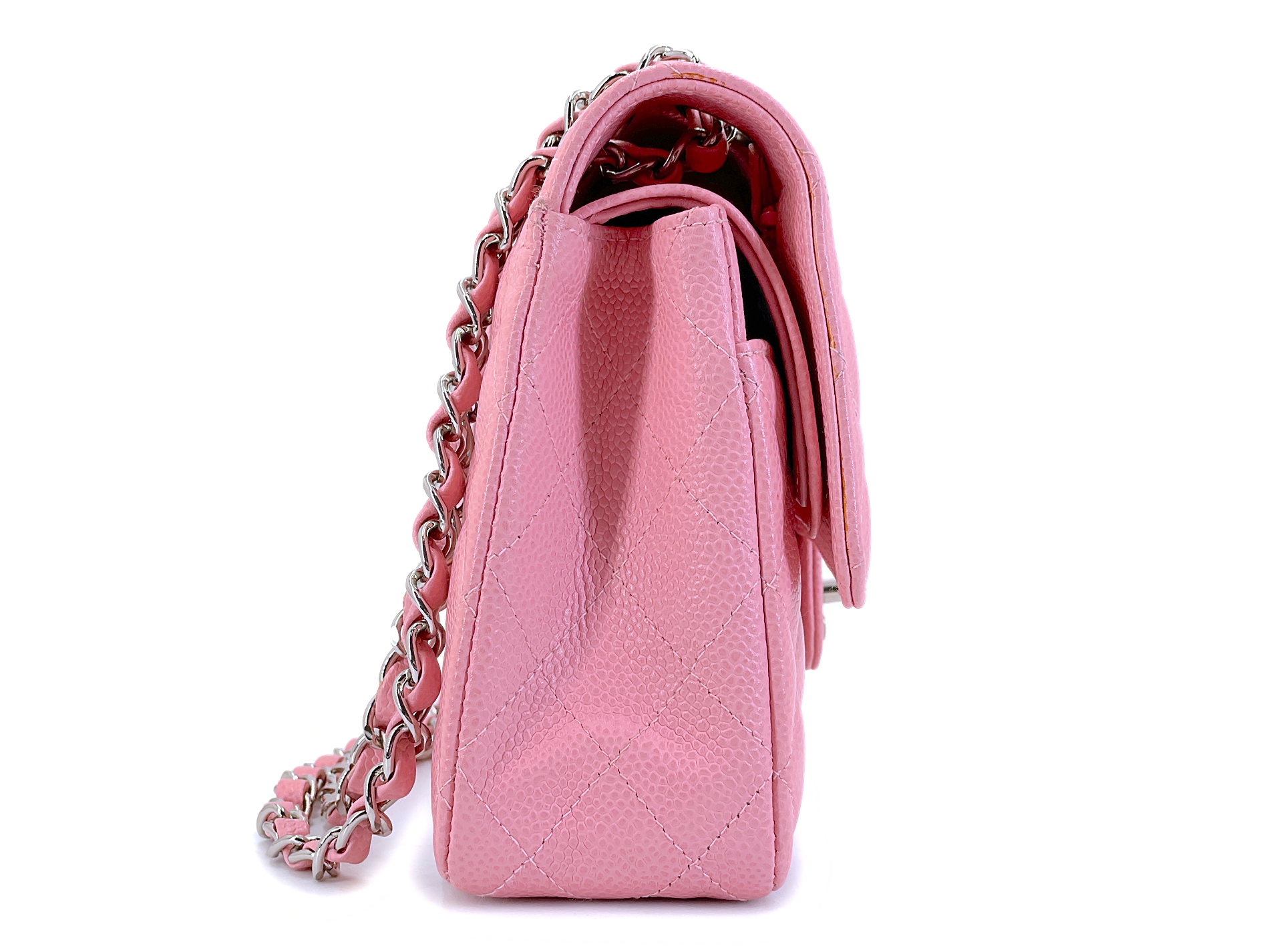 Chanel Vintage Sakura Pink Quilted Caviar Medium Classic Double Flap Bag Silver Hardware, 2004The interior is lined in a tonal leatherIncludes authenticity card, care booklet, dust bag, and box This item is final sale