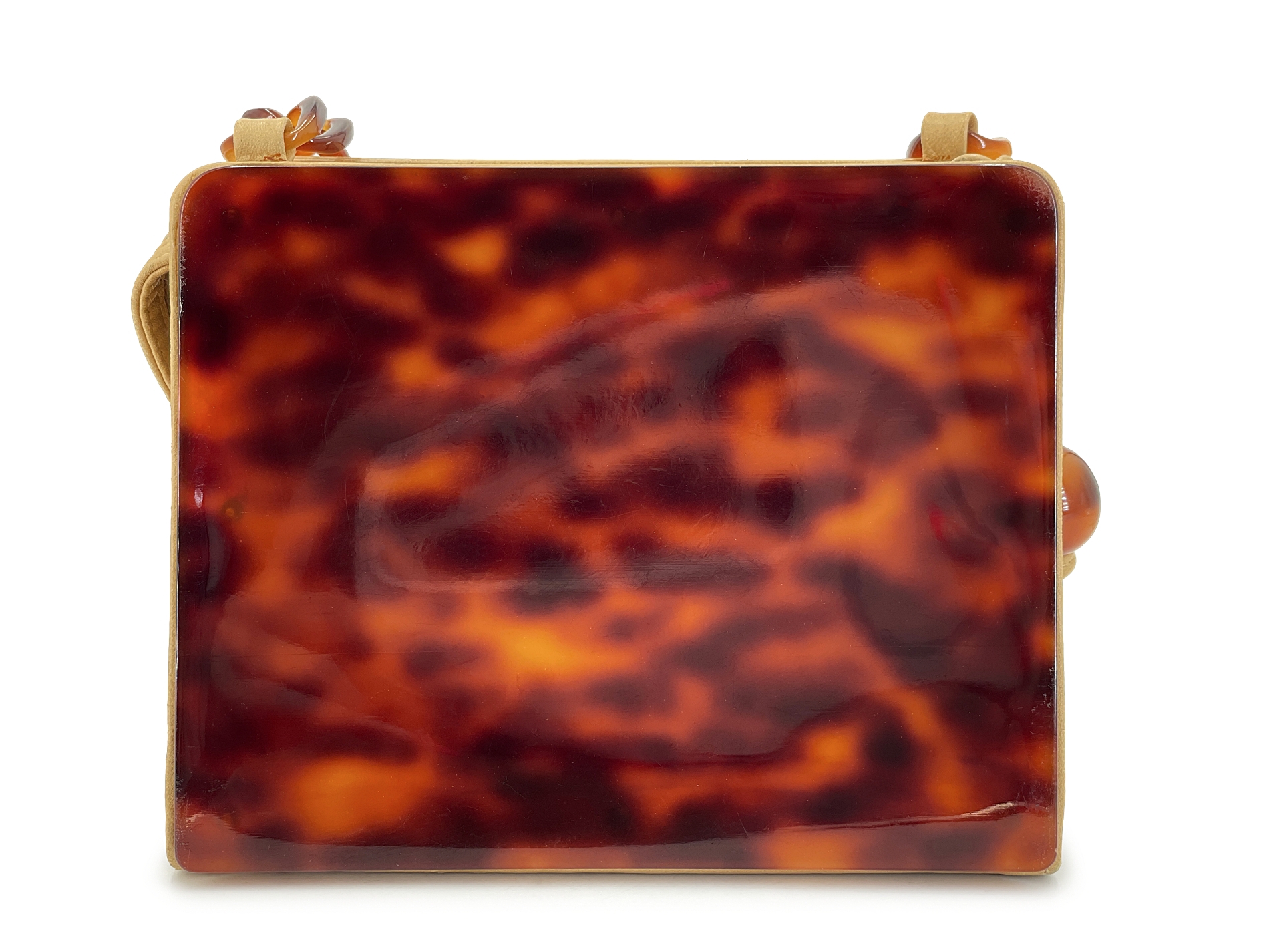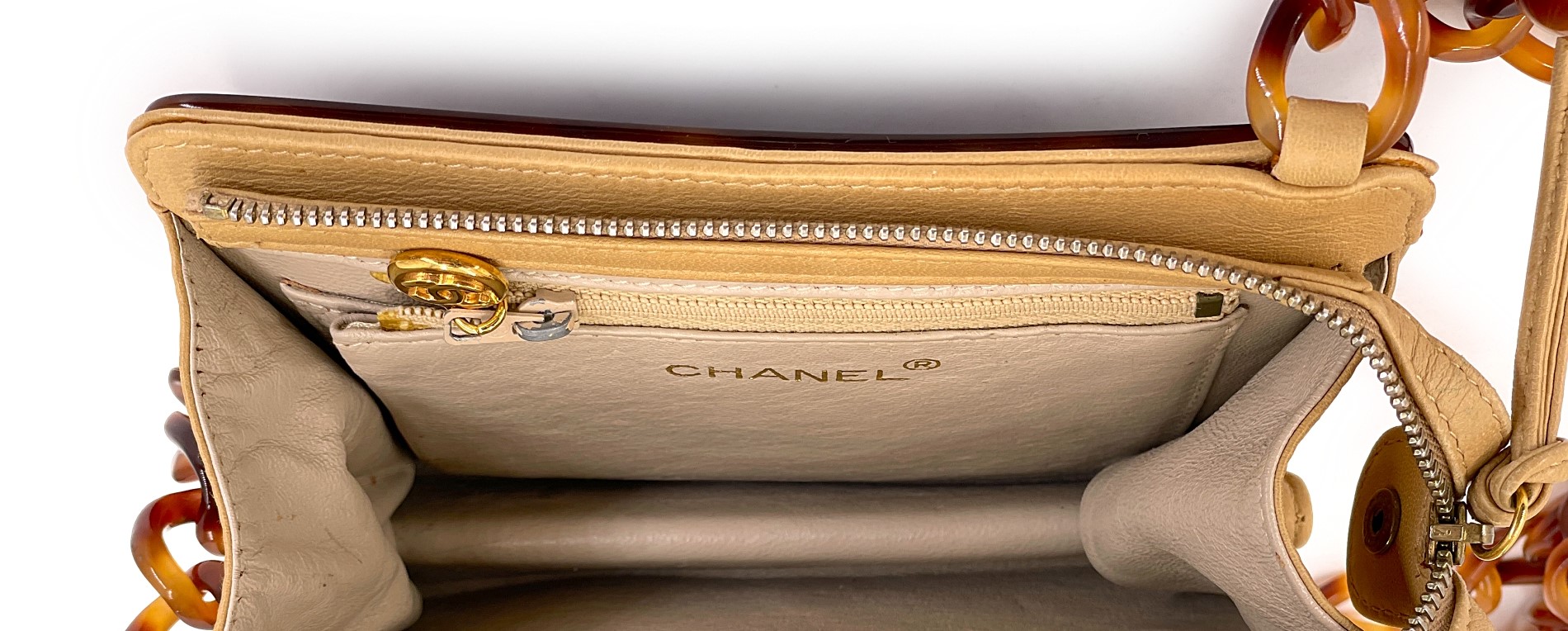 Vintage Tortoise Brown Resin CC Logo Crossbody Mini Bag Gold Hardware, 1994
