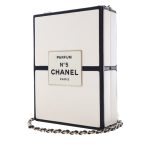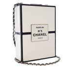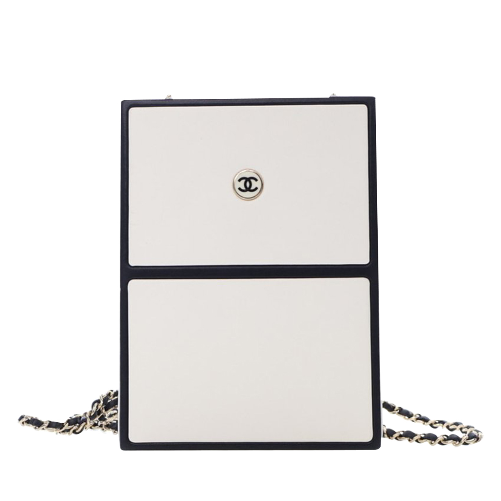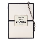 White and Black Calfskin No.5 Perfume Box Evening Clutch Gold Hardware, 2020