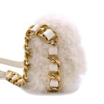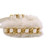 White Ivory Fur Faux Mini Crossbody Chunky Chain Flap Bag Aged Gold Hardware, 2021