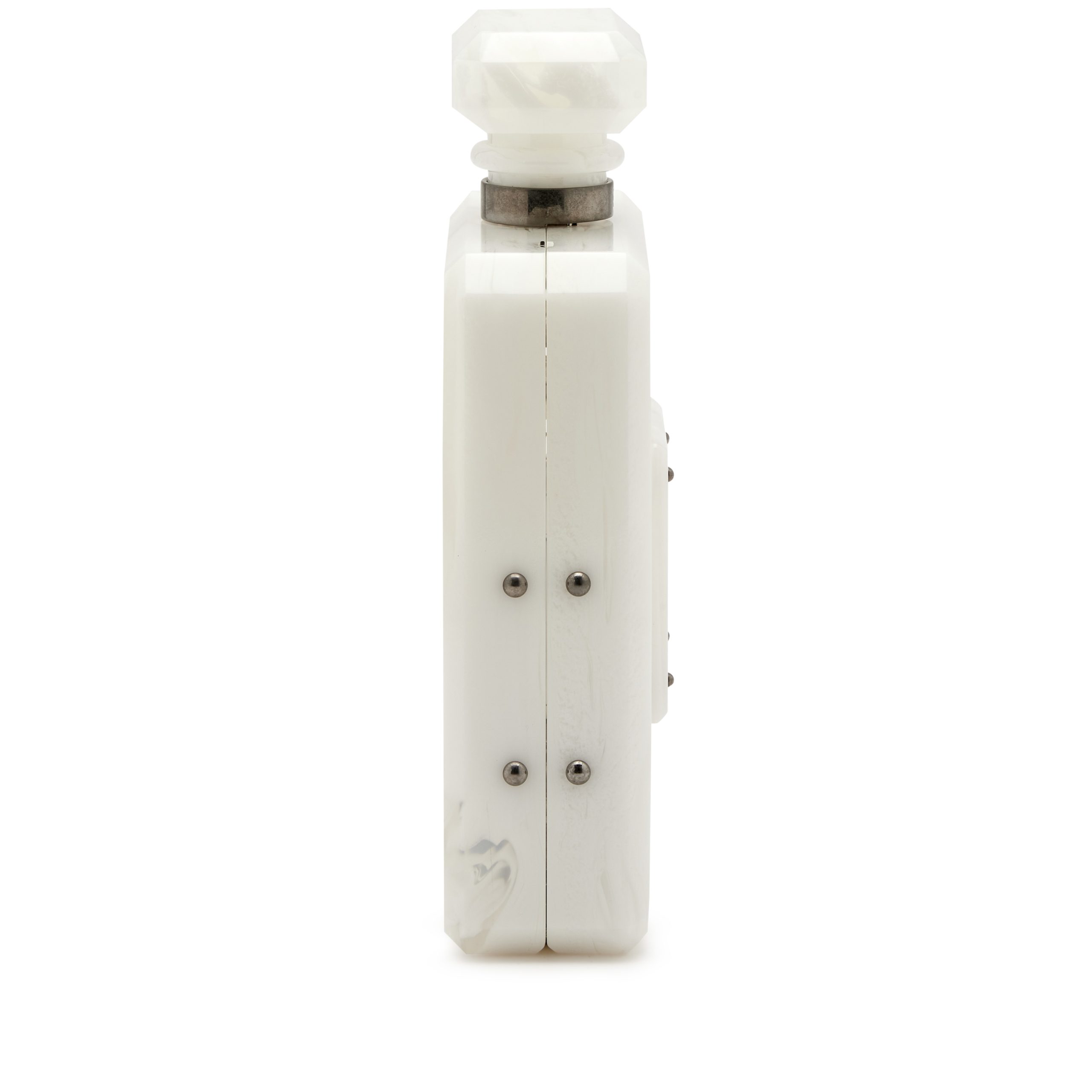 Chanel White Marble Plexiglass A Mtiers D’Art Paris-Rome No 5 Perfume Bottle Minaudiere Clutch Gunmetal Hardware, 2016The interior is unlinedIncludes care booklet, tag, ribbon, camellia flower, dust bag and boxThis item is final sale