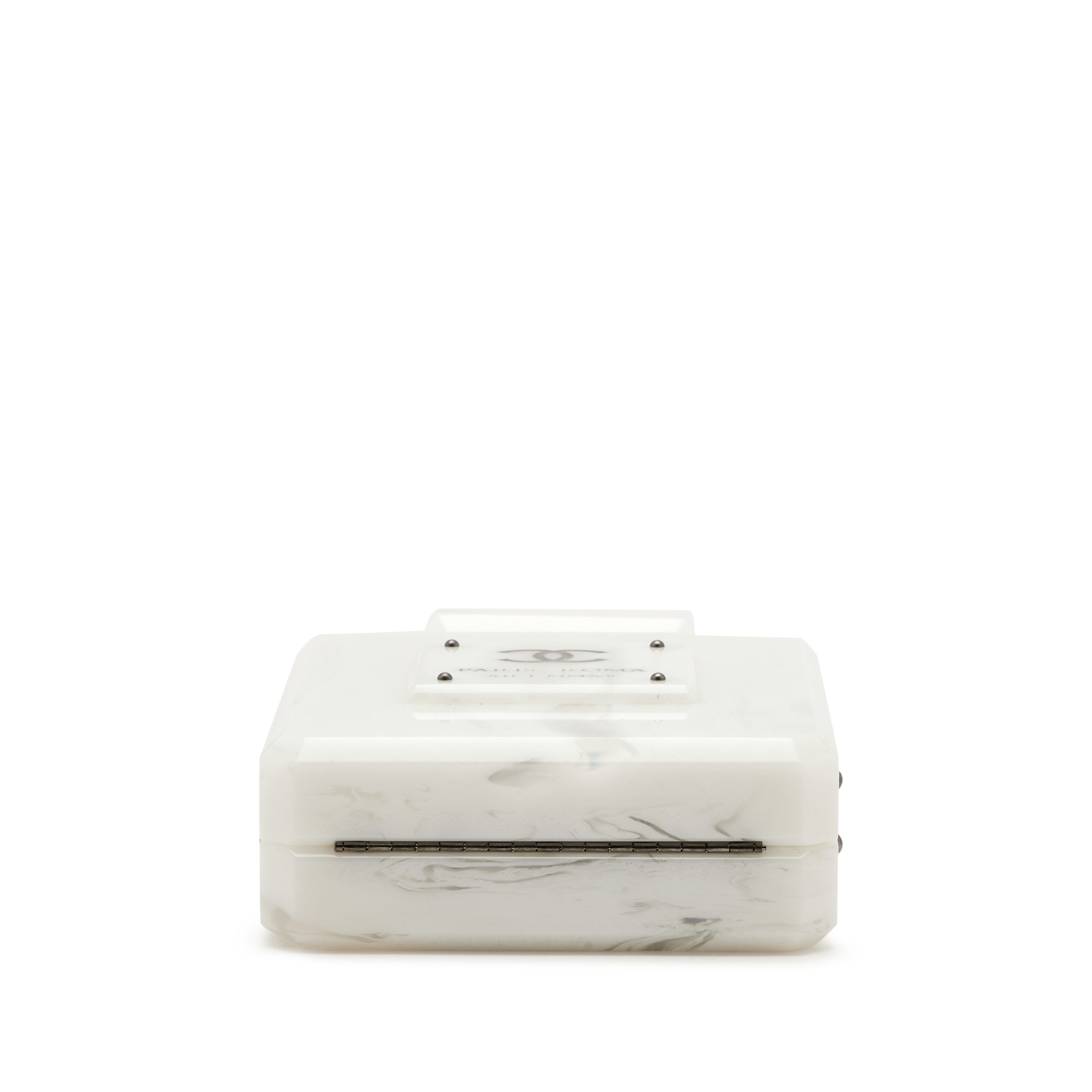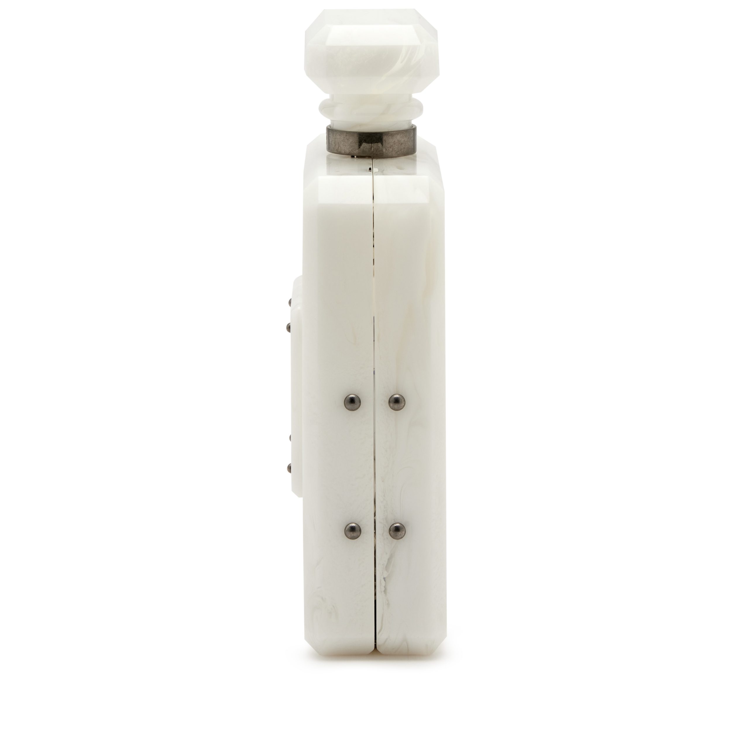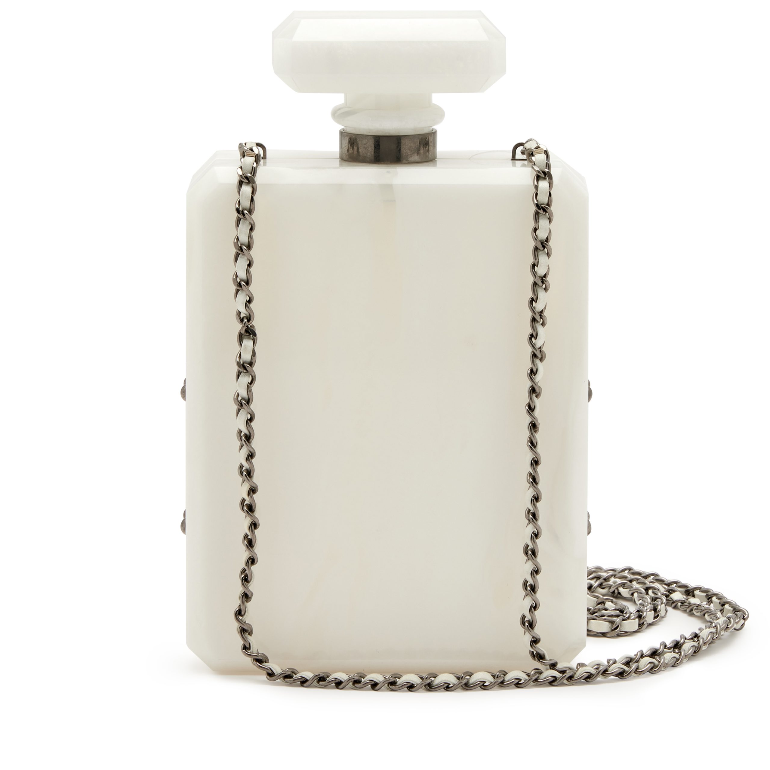 White Marble Plexiglass A Mtiers D’Art Paris-Rome No 5 Perfume Bottle Minaudiere Clutch Gunmetal Hardware, 2016