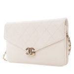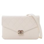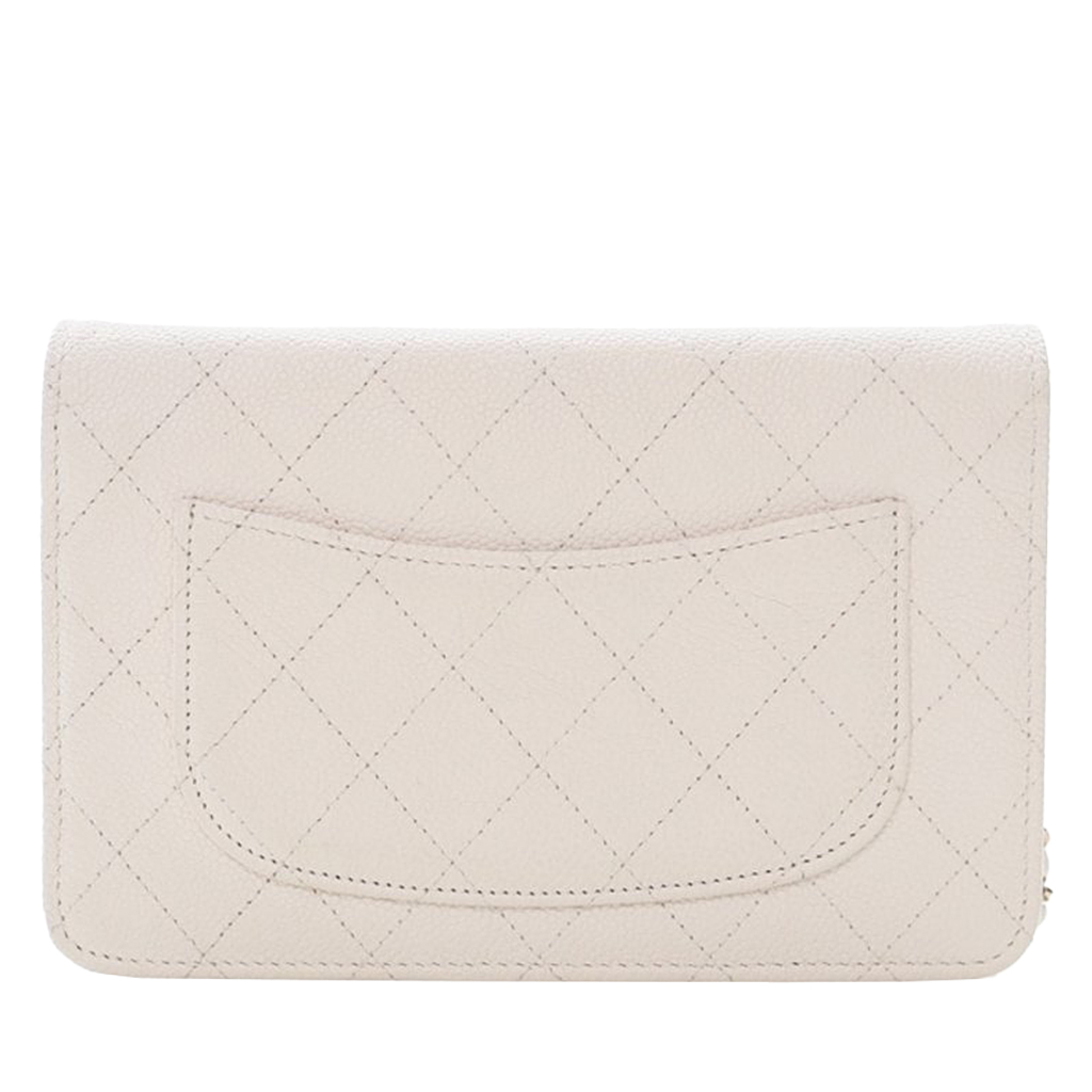 White Quilted Caviar Cuba Wallet On Chain (WOC) Pale Gold Hardware, 2018