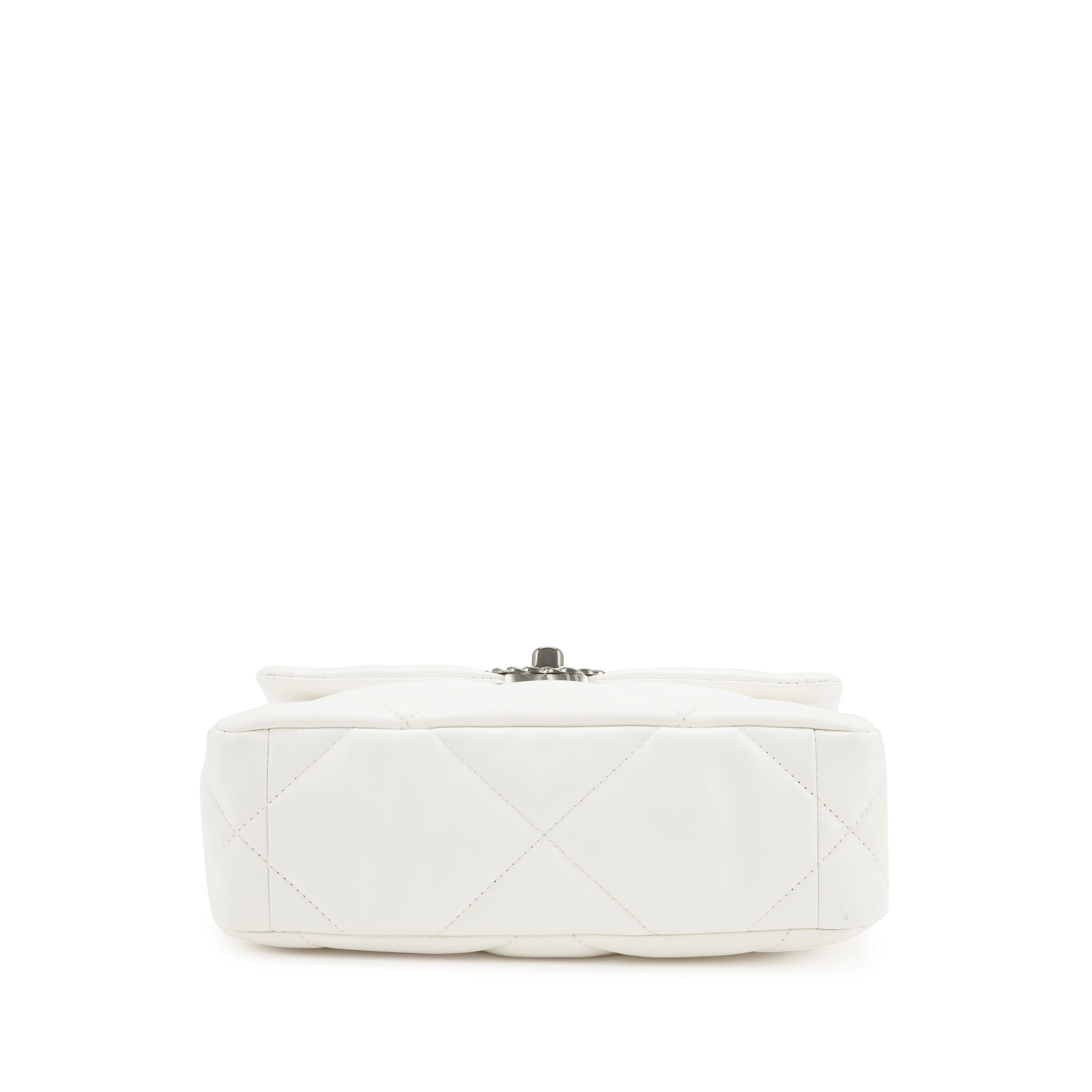 White Quilted Goatskin Medium 19 Flap Brushed Gold and Silver Hardware, 2022
