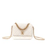White Quilted Lambskin Flap Bag Aged Gold Hardware, 2021