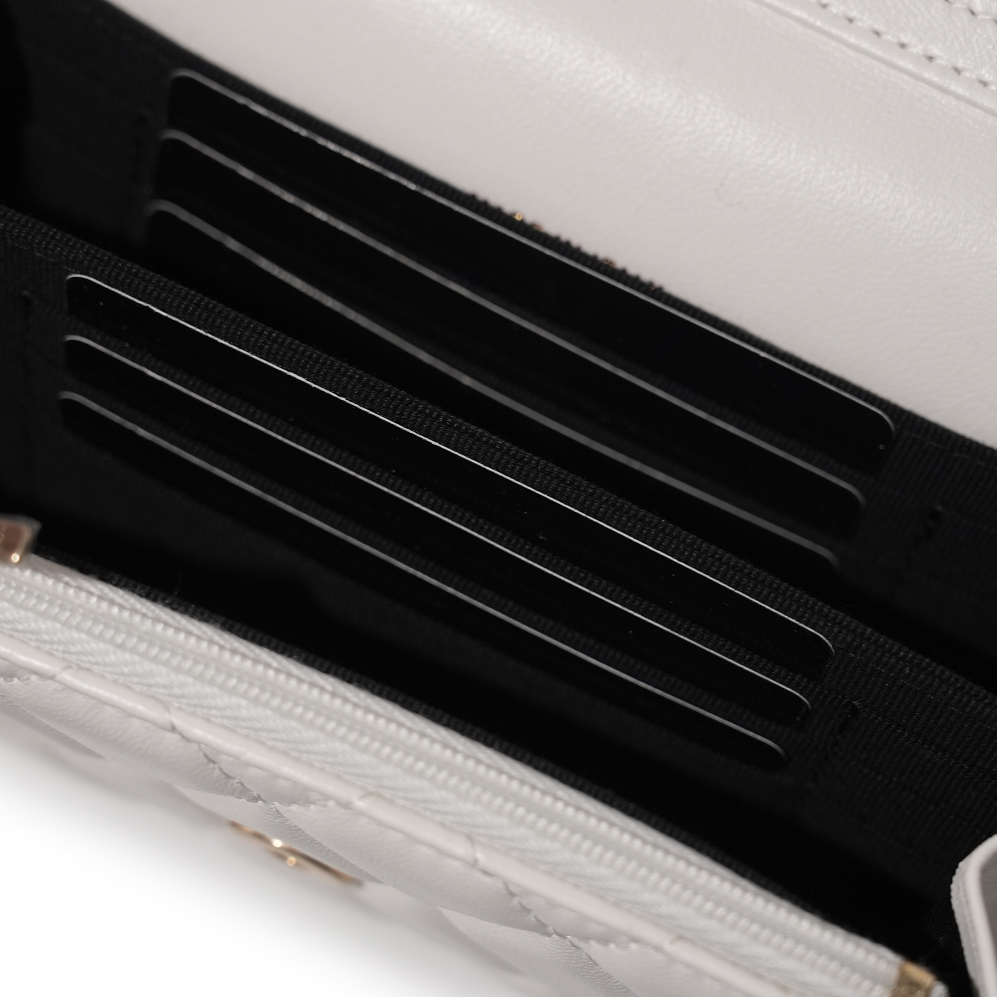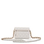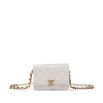 White Quilted Lambskin Mini Wallet on Chain Brushed Gold and White Hardware, 2022