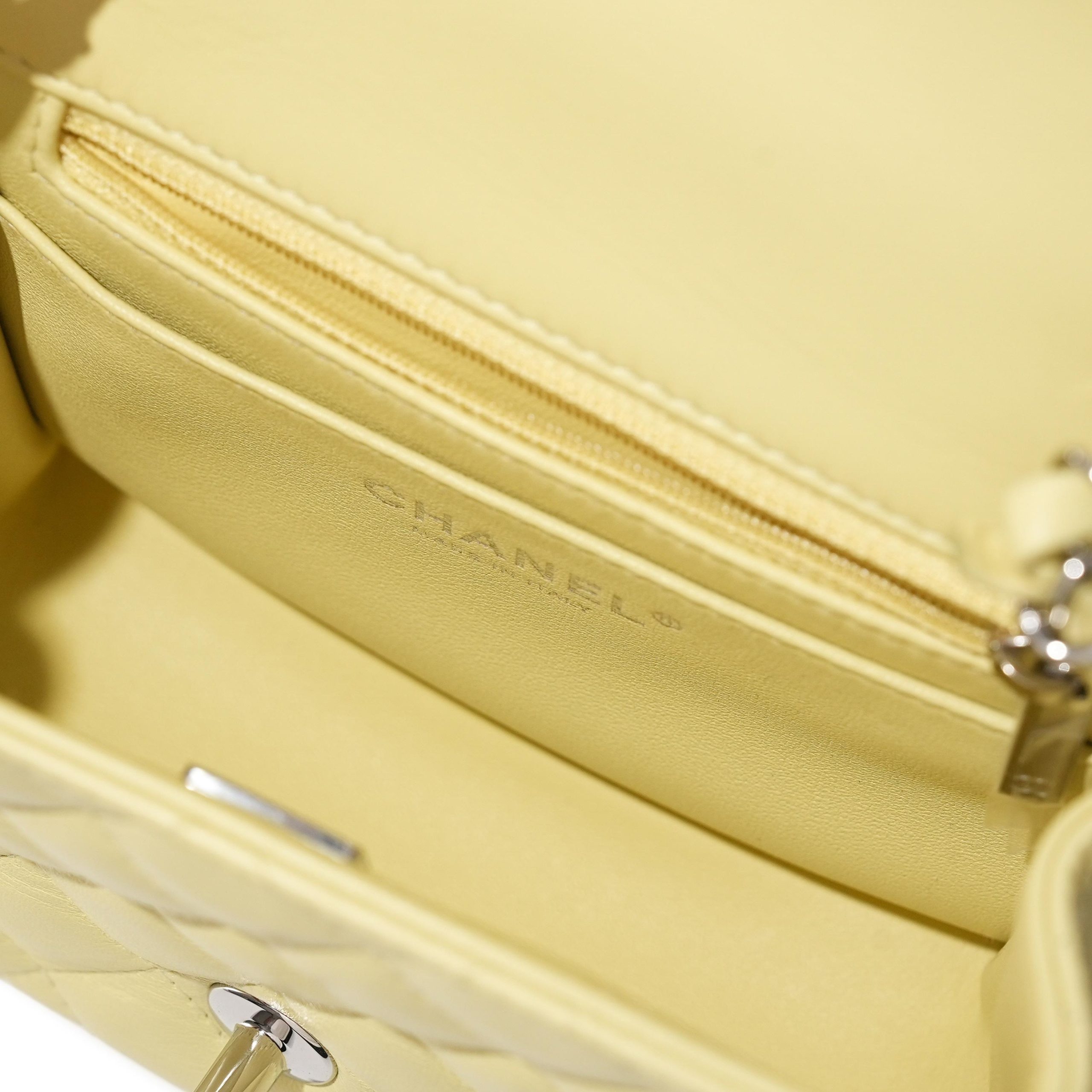 Yellow Quilted Lambskin Mini Flap Bag Silver Hardware, 2023